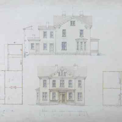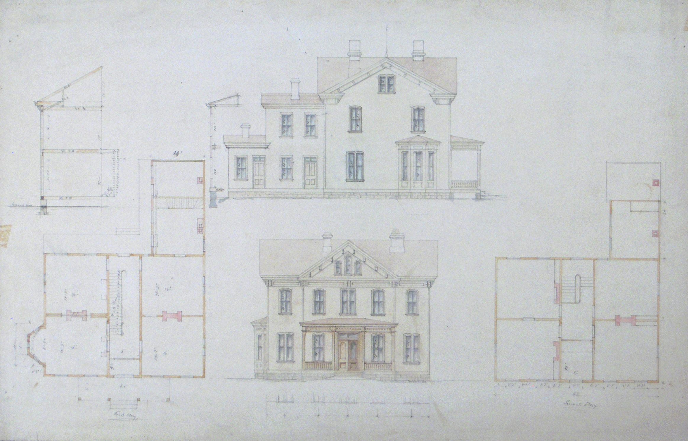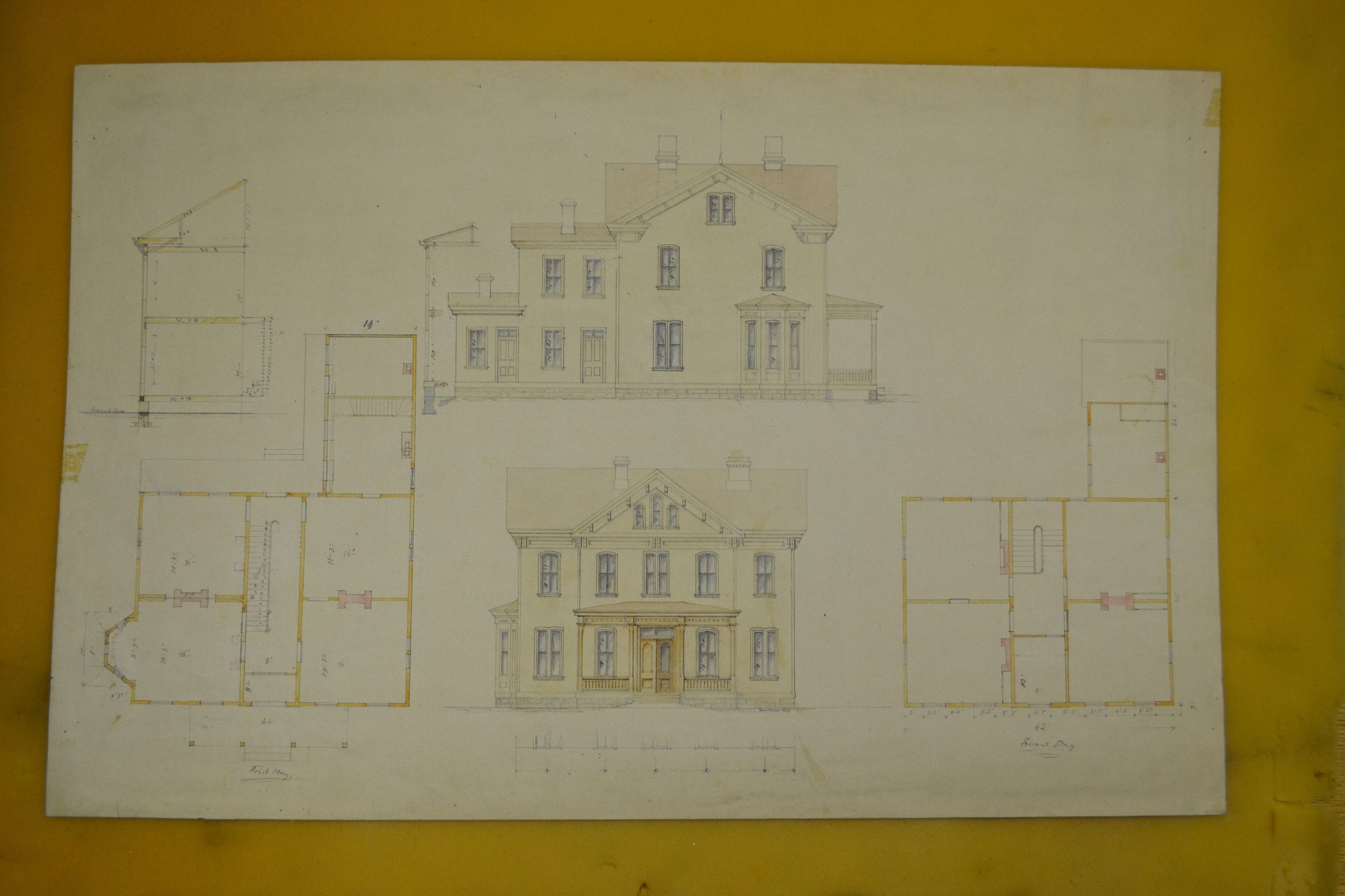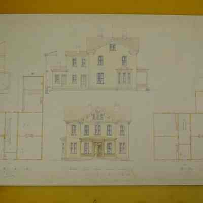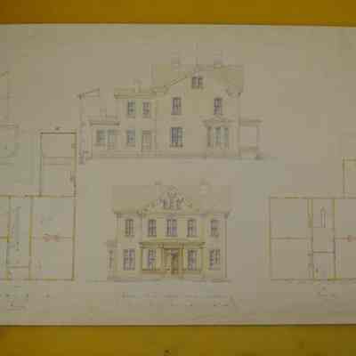 Side and Front Elevations and Floorplans for a Two Story House (Rectory?)Entry/Object ID