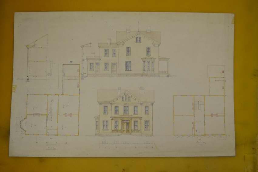 This appears to be a rectory with a housekeepers suite in the back: a private parlor all the way in the back with a staircase to an upper level bedroom over what would be the kitchen and which does not have access to the the rest of the bedrooms on the second story. In signature "gem." is German abbreviation for "Gemacht" (made). This was a signature abbreviation Br. Cosmas used mostly in the 1880s.Artwork Details