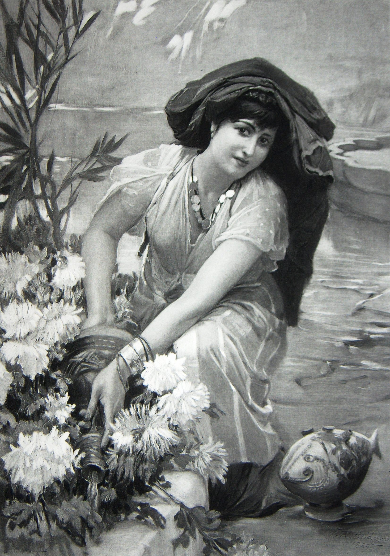 Ink, Paper, Print, Lithograph, Ink, Paper, Print, Lithograph, Souvenir of Tlemcen, Water, Woman, Goupil, Bridgman, F.D., F.D. Bridgman, Bridgman, Goupil & Cie
