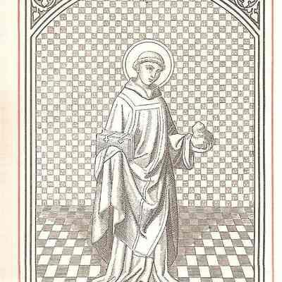 This is a reproduction of a 16th century engraving of St. Stephen the Deacon. He was the very first martyr of the Church Age, stoned to death by the Jews, including Saul (the future St. Paul). The second day of Christmas is the Feast of St. Stephen, the First Deacon. Saint Stephen is in the center holding a stone in his left had and a book in his right. This is 3 out of 5 of the same print.Collection