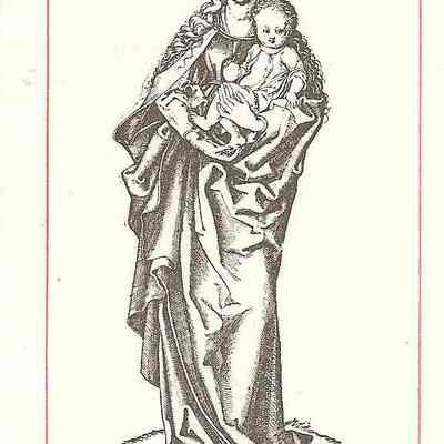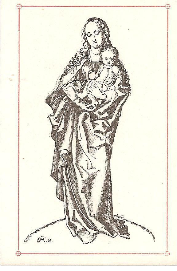 Print, Lithograph, Paper, Ink, Martin Schongauer, Schongauer, Martin, Albrecht Durer, Durer, Albrecht, Print, Lithograph, Paper, Ink, Madonna, Mary, Baby, Jesus, Christ, Infant, Standing