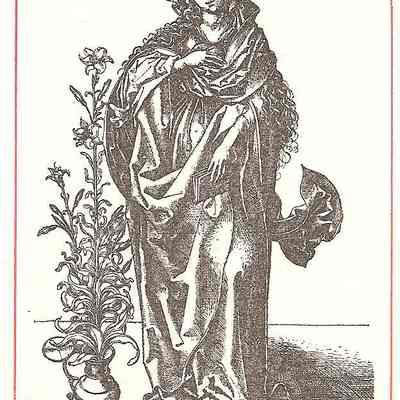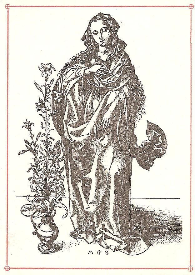 Print, Lithograph, Paper, Ink, Martin Schongauer, Schongauer, Martin, Albrecht Durer, Durer, Albrecht, Print, Lithograph, Paper, Ink, Mary, Standing Madonna, Madonna, Lilies, Blessed Virgin
