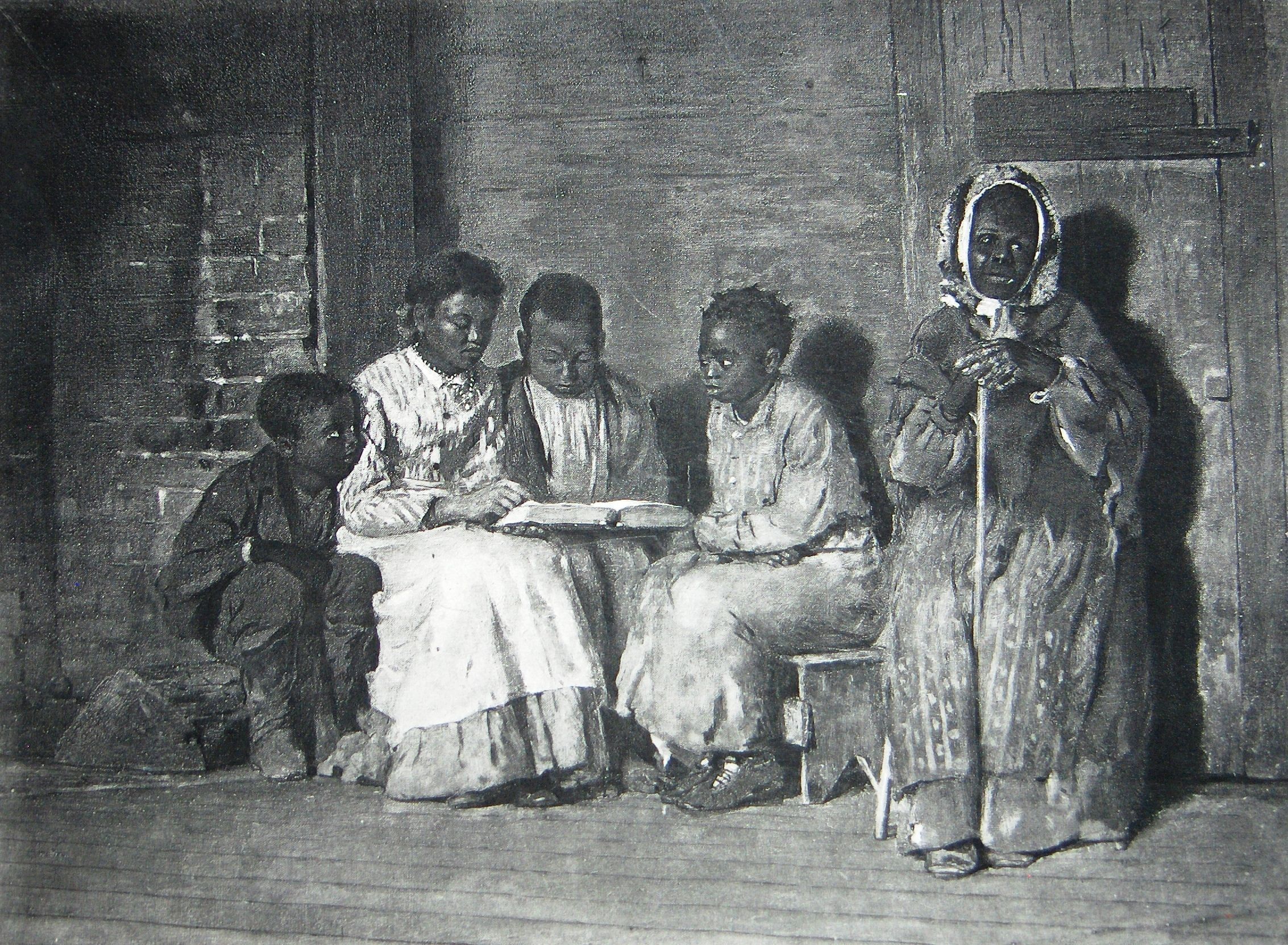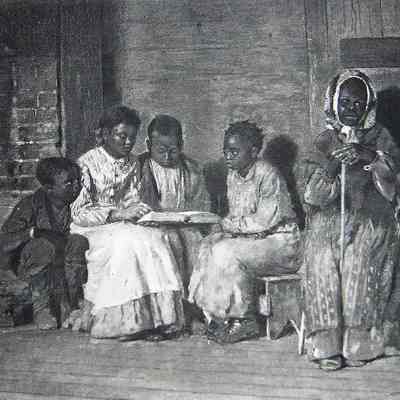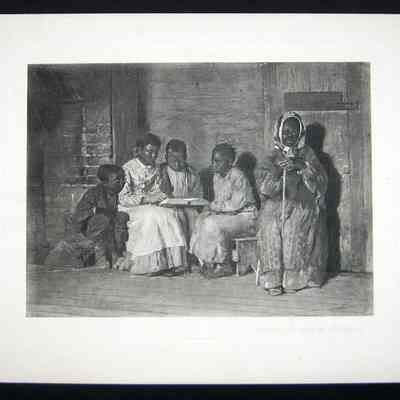 Ink, Paper, Print, Lithograph, Ink, Paper, Print, Lithograph, Sunday Morning in Old Virginia, Virginia, African American, Children, Reading, Goupil, Winslow, Homer, Winslow, Winslow Homer, Goupil & Cie