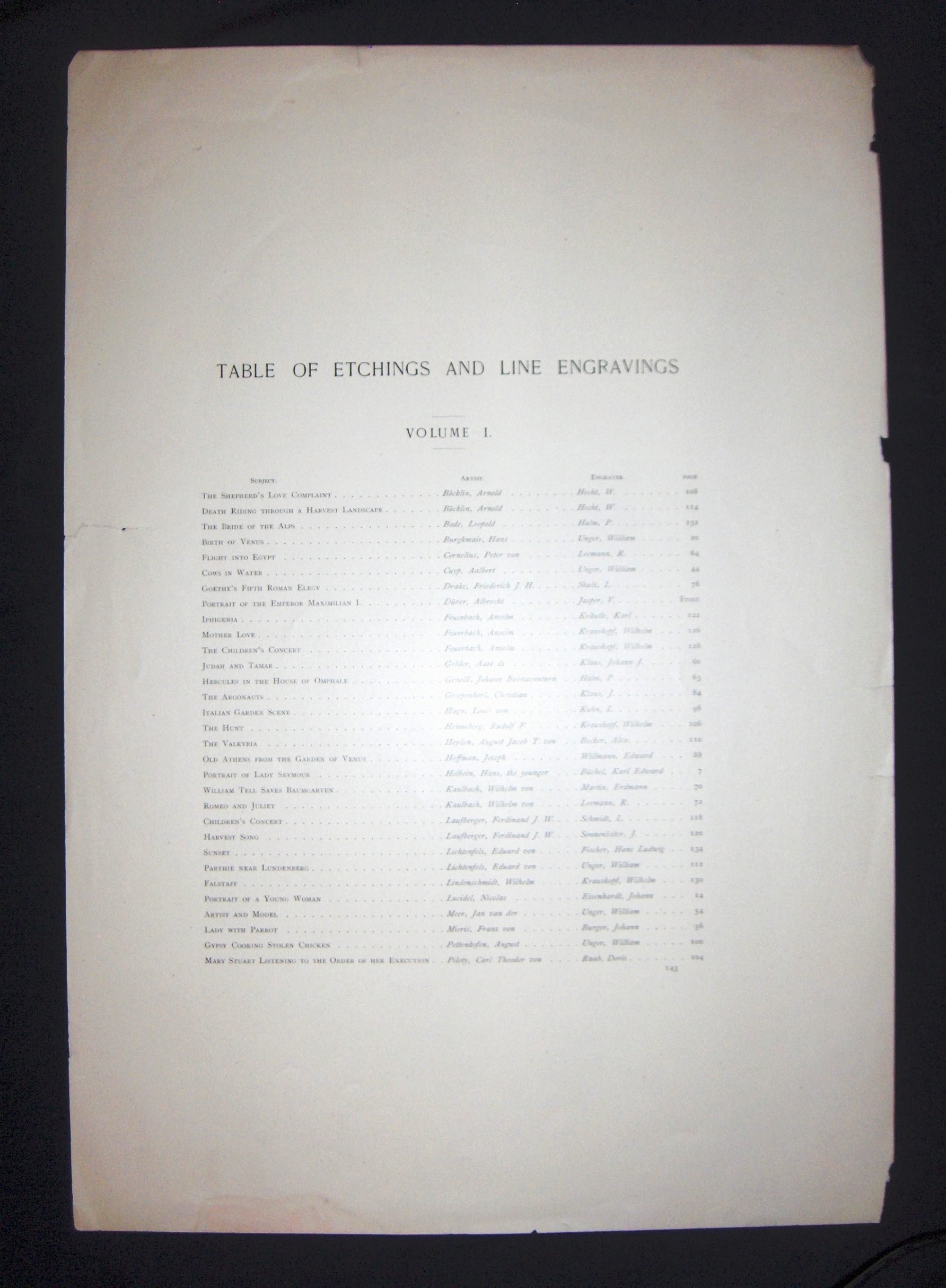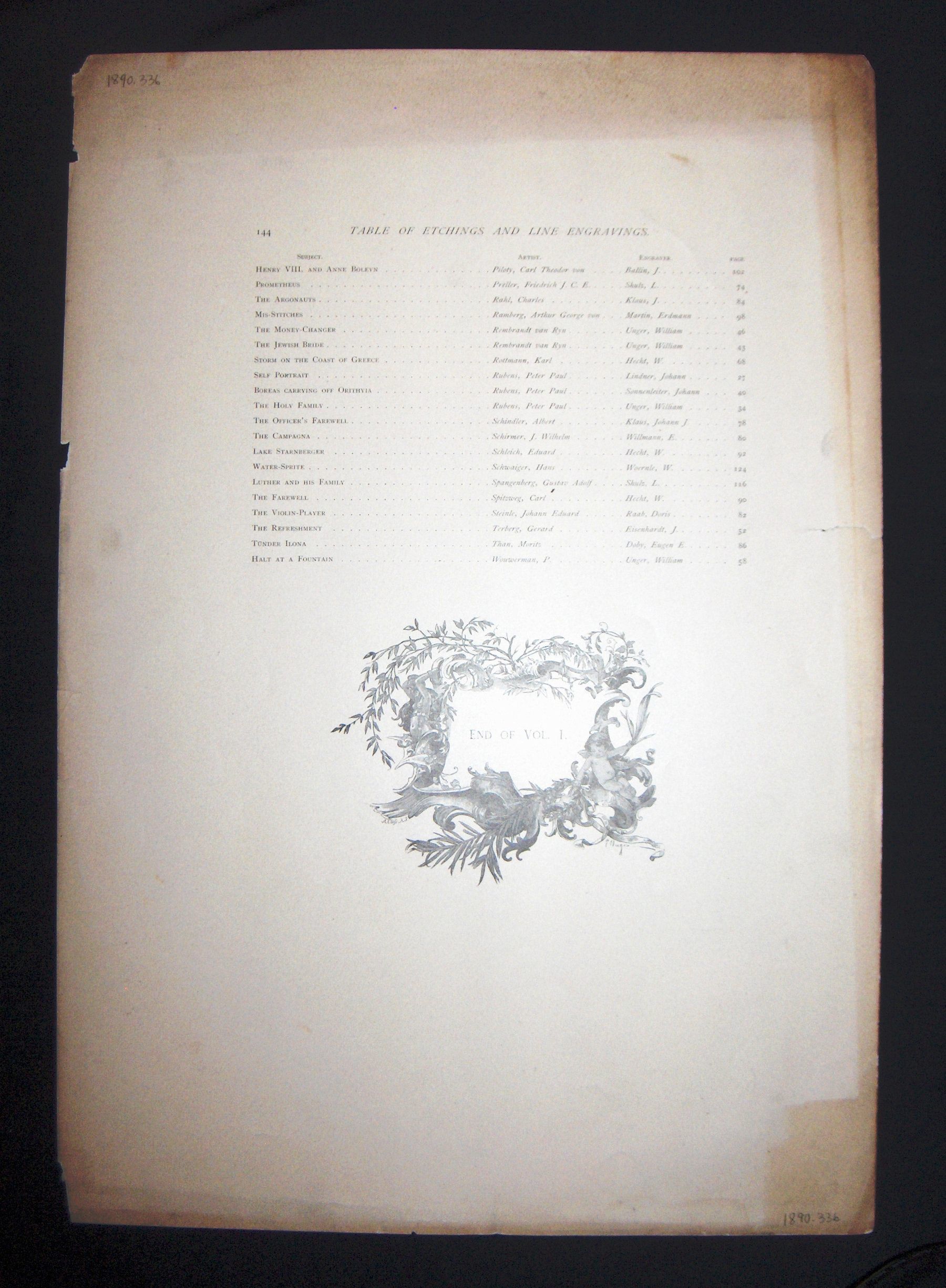 "Table of Etchings and Line Engravings Vol. I"Entry/Object ID