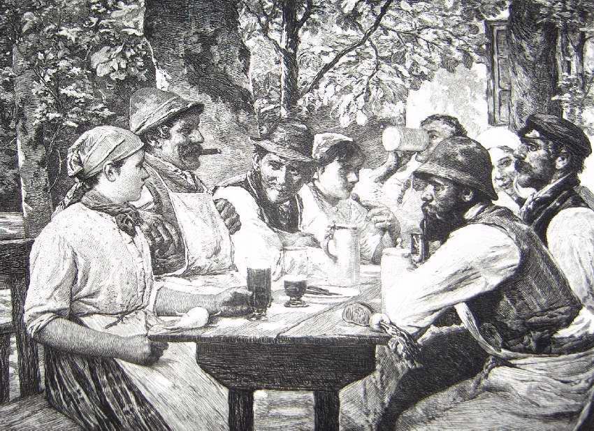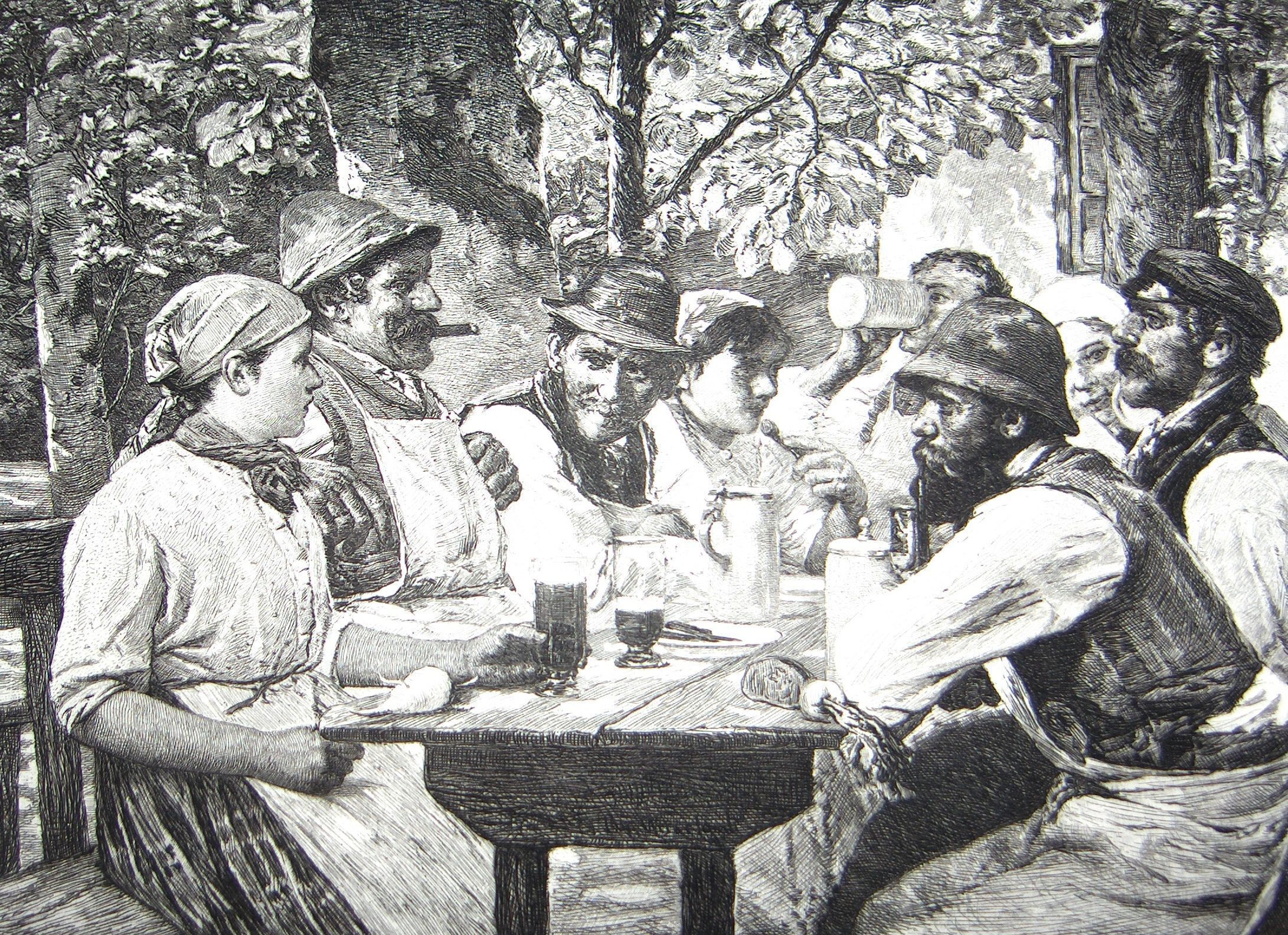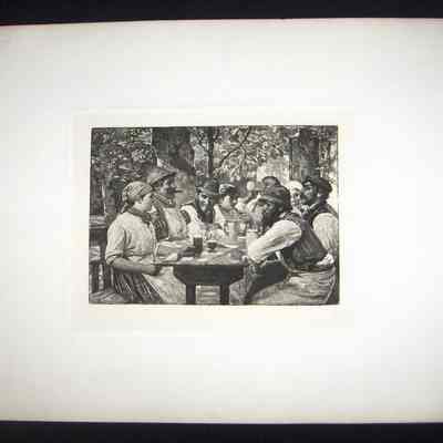 Ink, Paper, Print, Lithograph, Ink, Paper, Print, Lithograph, Table Picnic, Meal, Feast, German