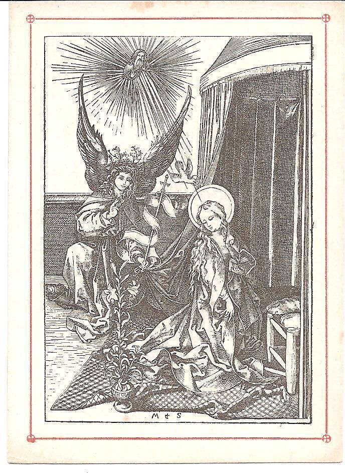 Print, Lithograph, Paper, Ink, Martin Schongauer, Schongauer, Martin, Albrecht Durer, Durer, Albrecht, Print, Lithograph, Paper, Ink, Mary, Annunciation, Gabriel, Angel, God, Virgin