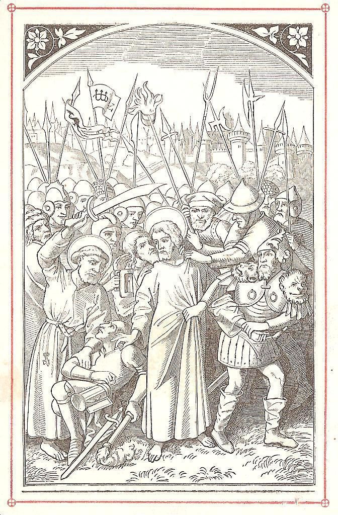 Ink, Paper, Print, Lithograph, Schongauer, Martin, Martin Schongauer, Schongauer, Albrecht Durer, Durer, Albrecht, Durer, Ink, Paper, Print, Lithograph, Prayer Cards, Religious, Religious Subject Matter, Arrest, Jesus, Simon Peter, Judas, Soldiers, Garden of Gethsemane