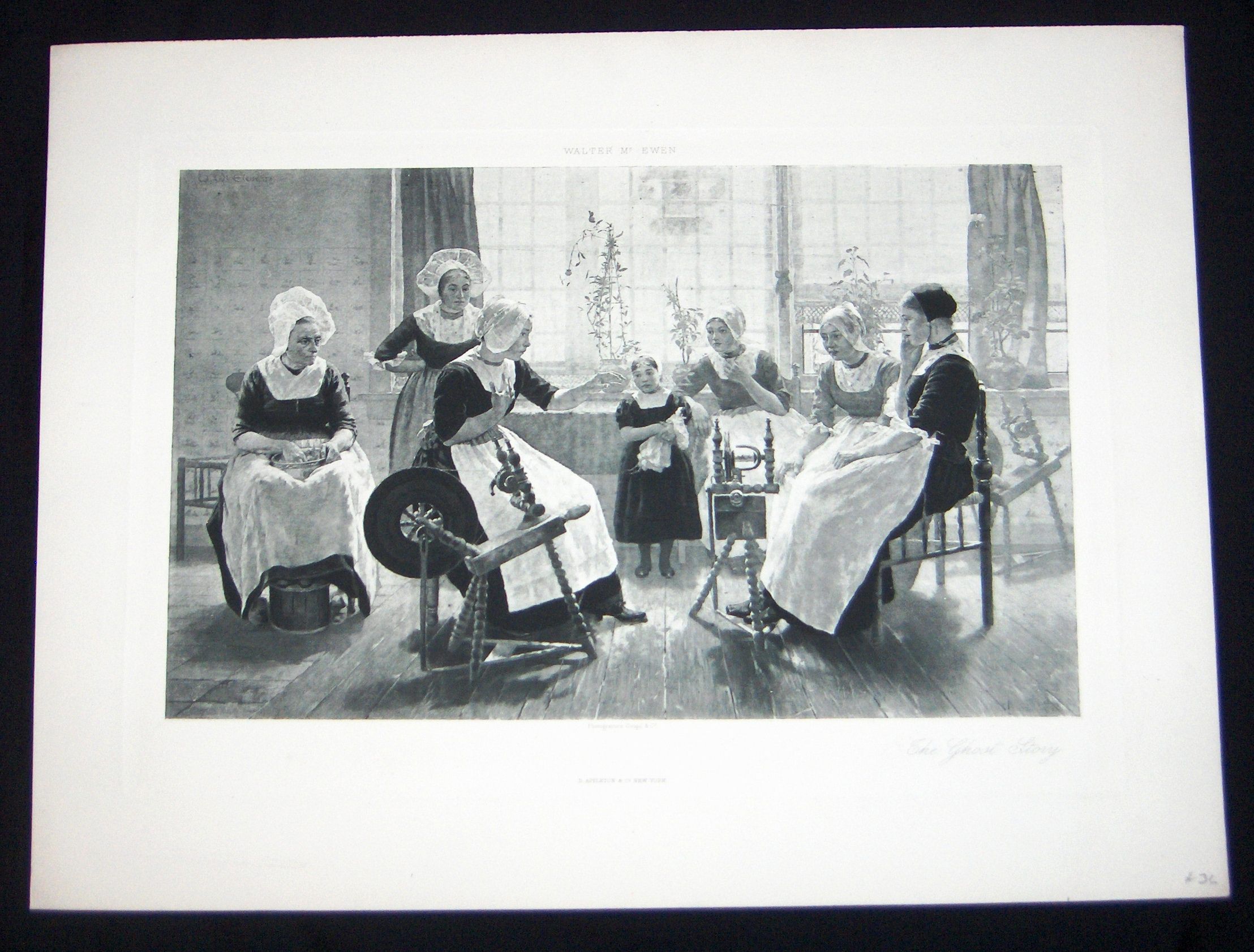 Ink, Paper, Print, Lithograph, Ink, Paper, Print, Lithograph, Ghost Story, Women, Girls, Spinning, Wool, Spinning Wheel, Goupil, Walter McEwen, McEwen,Walter, McEwen, Goupil & Cie