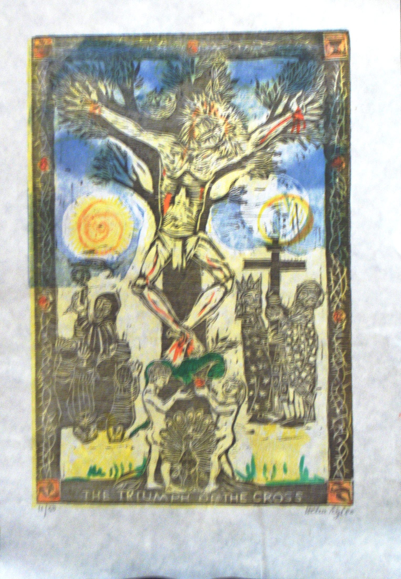 Woodcut, Print, Ink, Paper, Siegl, Helen, Helen Siegl, Siegl, Saint Vincent College, Saint Vincent, Jesus, Cross, Crucifixtion, The Triumph of the Cross, Religious, Woodcut, Print, Ink, Paper