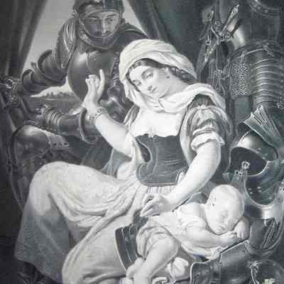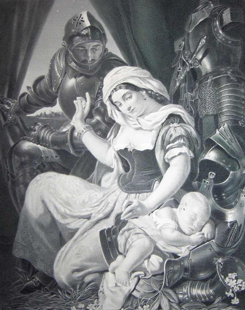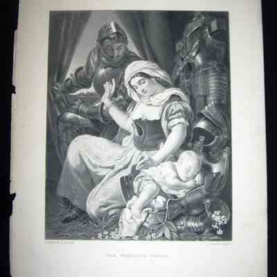 Ink, Paper, Print, Lithograph, Ink, Paper, Print, Lithograph, The Warrior's Cradle, Baby, Armor, Tent, Worrior, Woman, Man, Maclise, D., D. Maclise, Frank, J., J. Frank