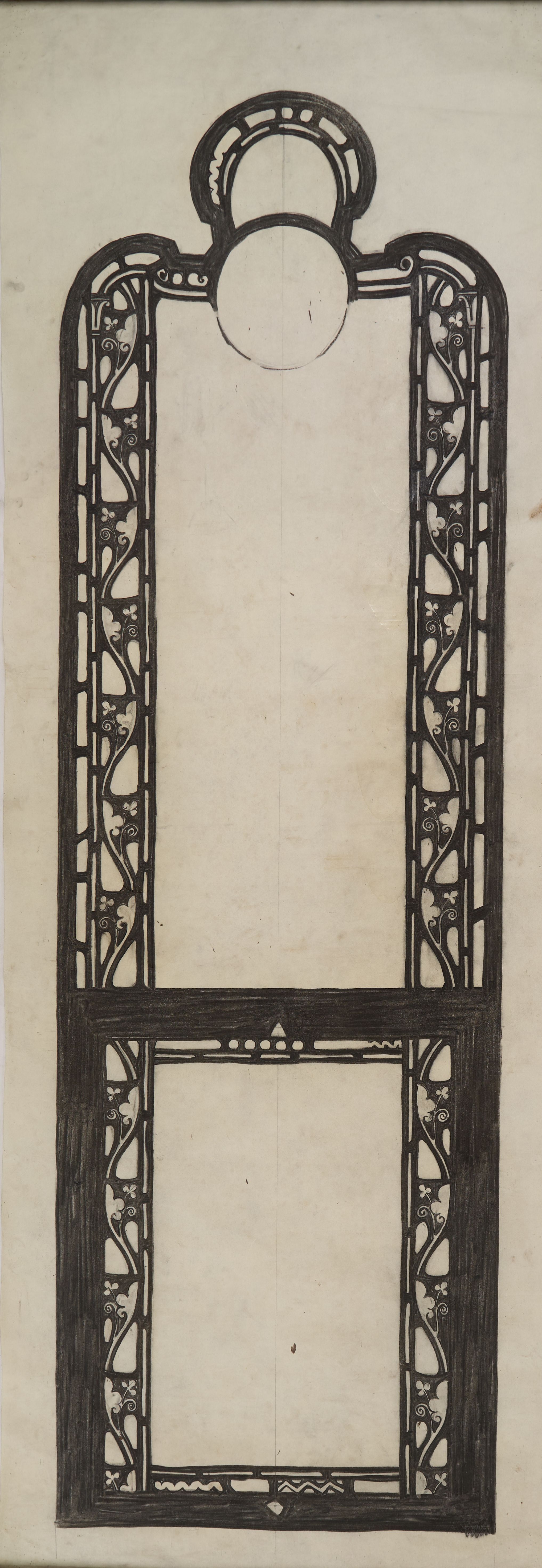 Stained glass scale cartoon, aisle window at Rosary Cathedral in Toledo, OH. Outline.Type of Drawing