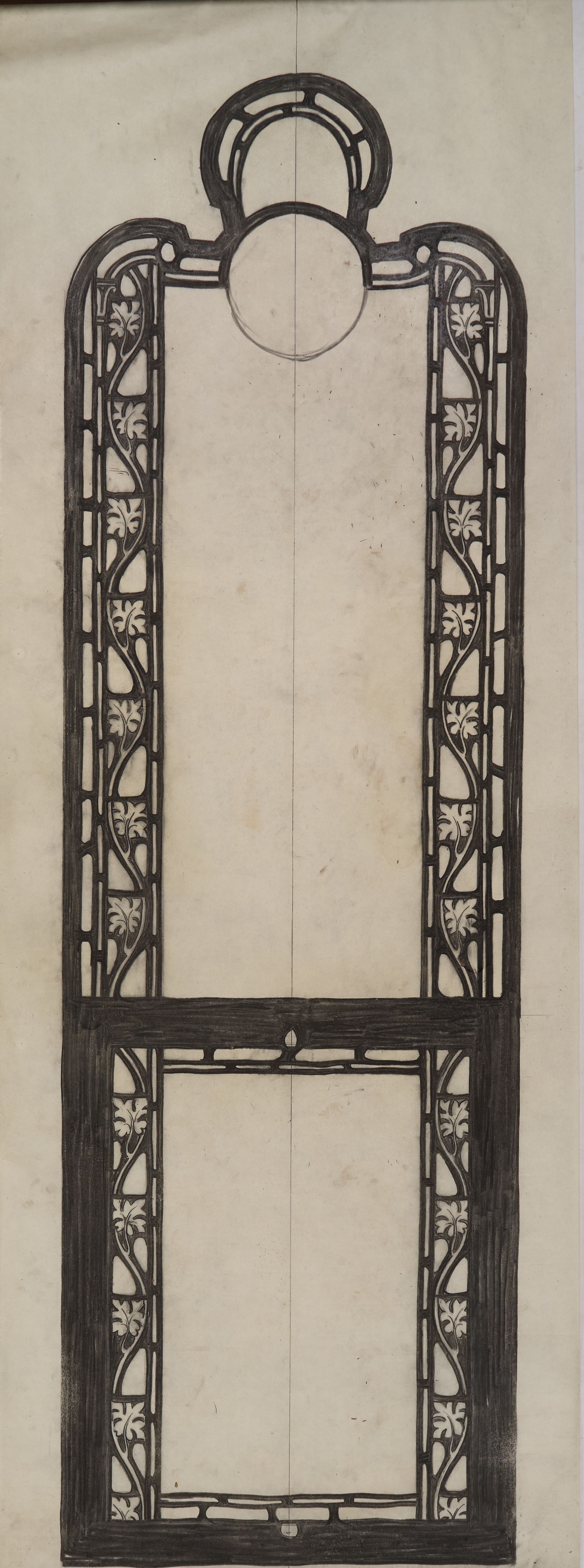 Stained glass scale cartoon, aisle window at Rosary Cathedral in Toledo, OH. Outline.Type of Drawing