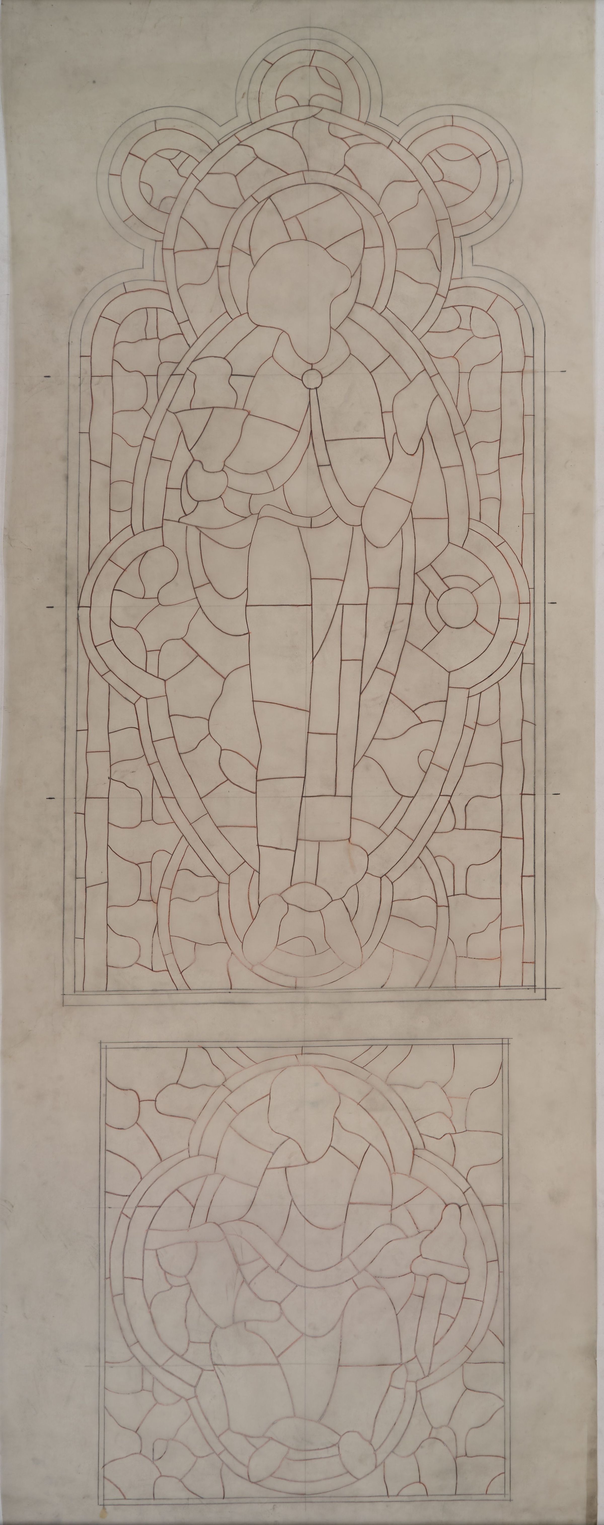 Stained glass scale cartoon, Bishop's Chapel Window at Rosary Cathedral in Toledo, OH. Depicts St. John with a chalice and serpent; the prophet Micah with a scroll and sword. OutlineType of Drawing