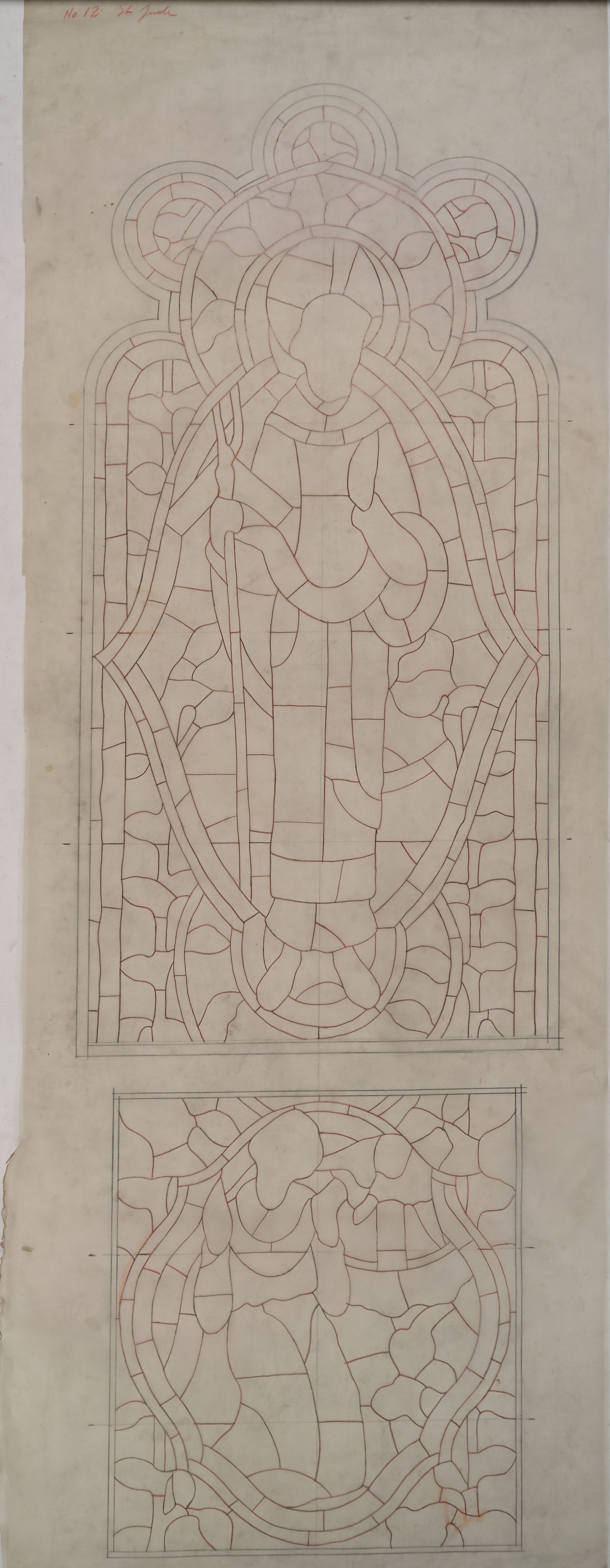Stained glass scale cartoon, Bishop's Chapel Window at Rosary Cathedral in Toledo, OH. Depicts St. Judee with a staff; the prophet Malachi with an angel. OutlineType of Drawing