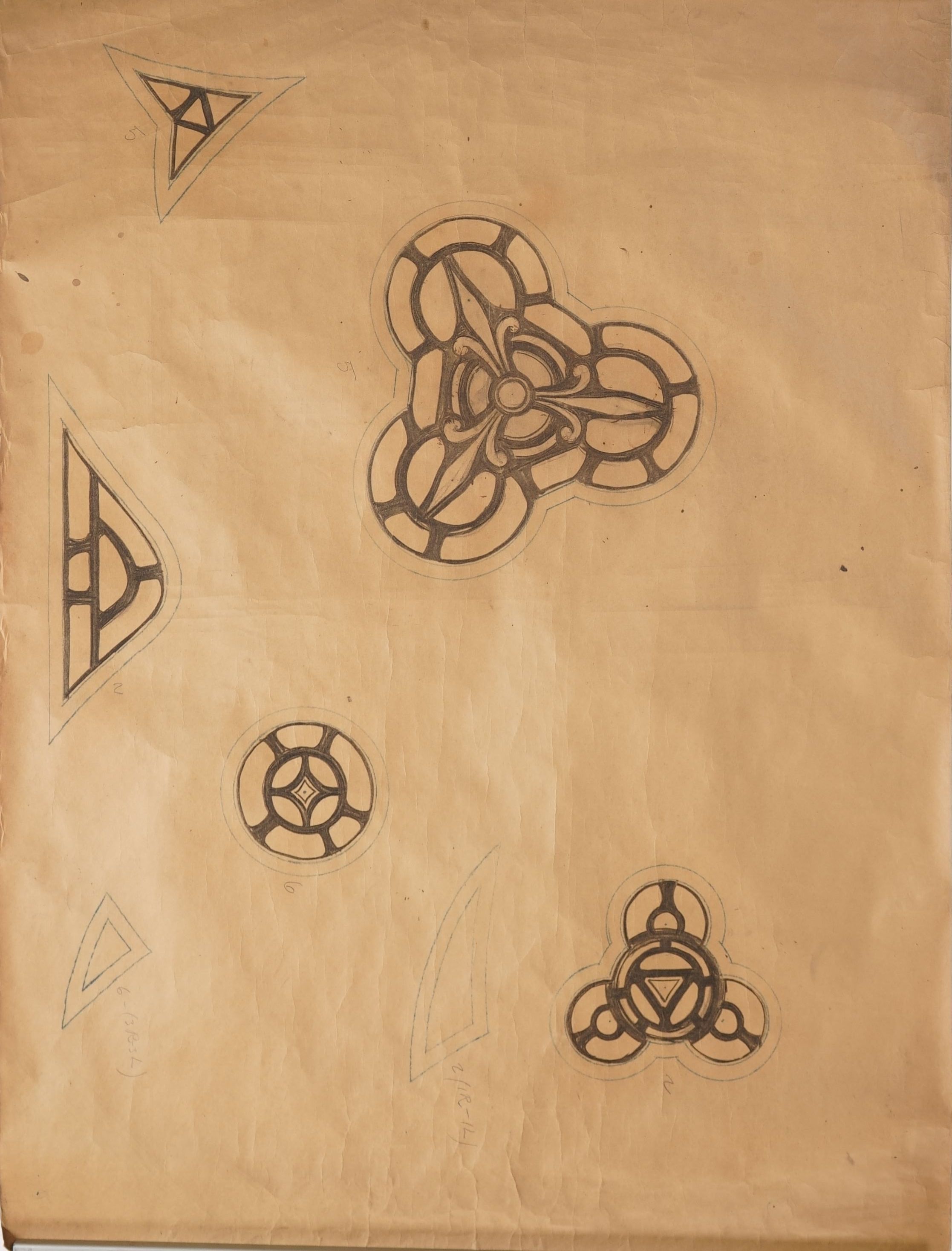 Stained glass scale cartoon, Rosary Cathedral, Toledo, OH. Tracery for clerestory windows.Type of Drawing