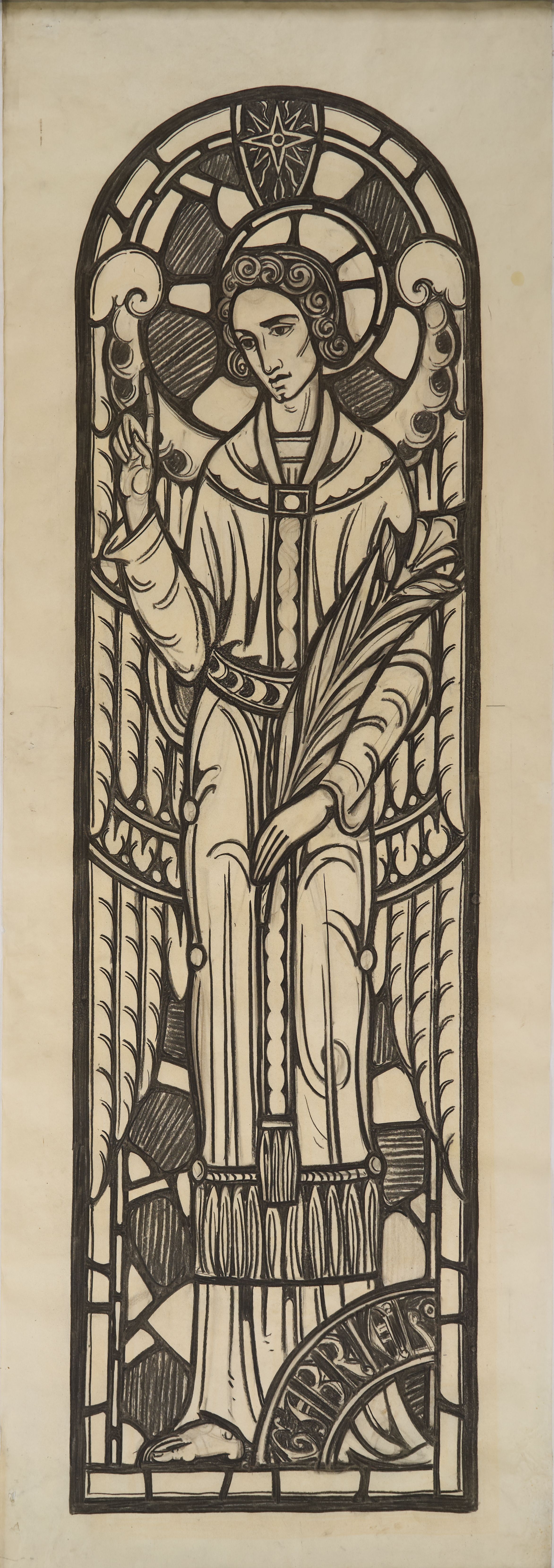 Stained glass scale cartoon, sanctuary window at Rosary Cathedral in Toledo, OH. Depicts the Archangel Gabriel with a lily.Type of Drawing