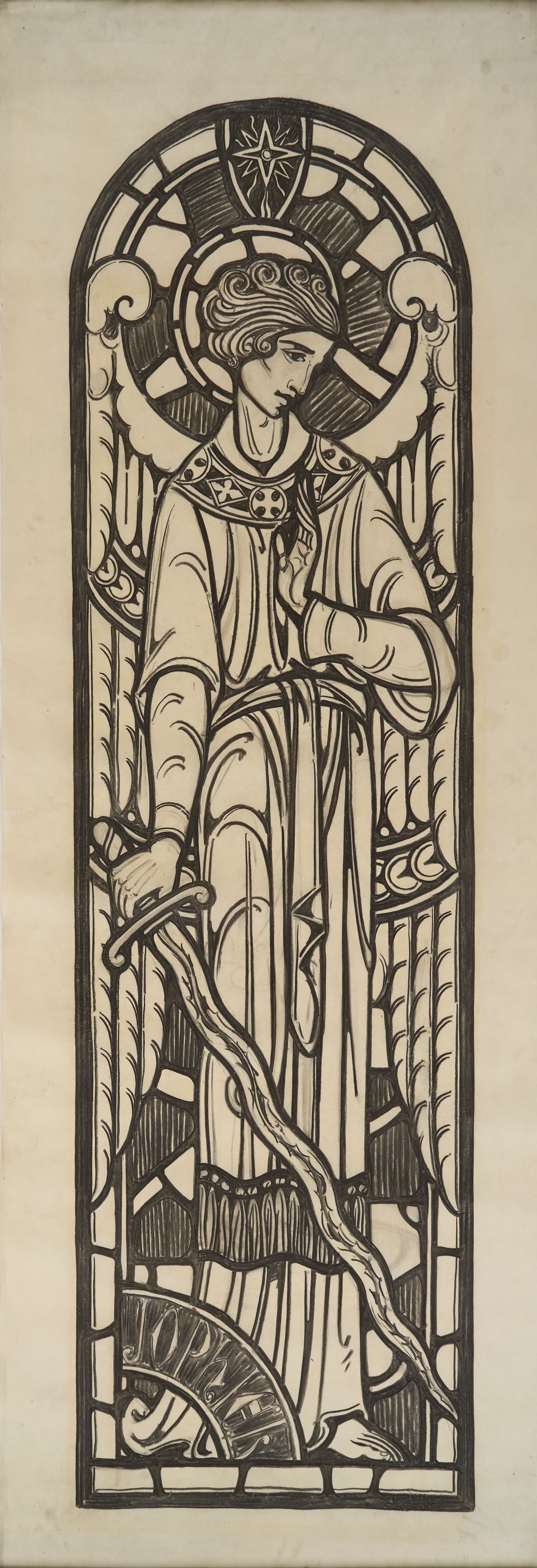 Stained glass scale cartoon, sanctuary window at Rosary Cathedral in Toledo, OH. Depicts the Archangel Jophiel with a sword.Type of Drawing