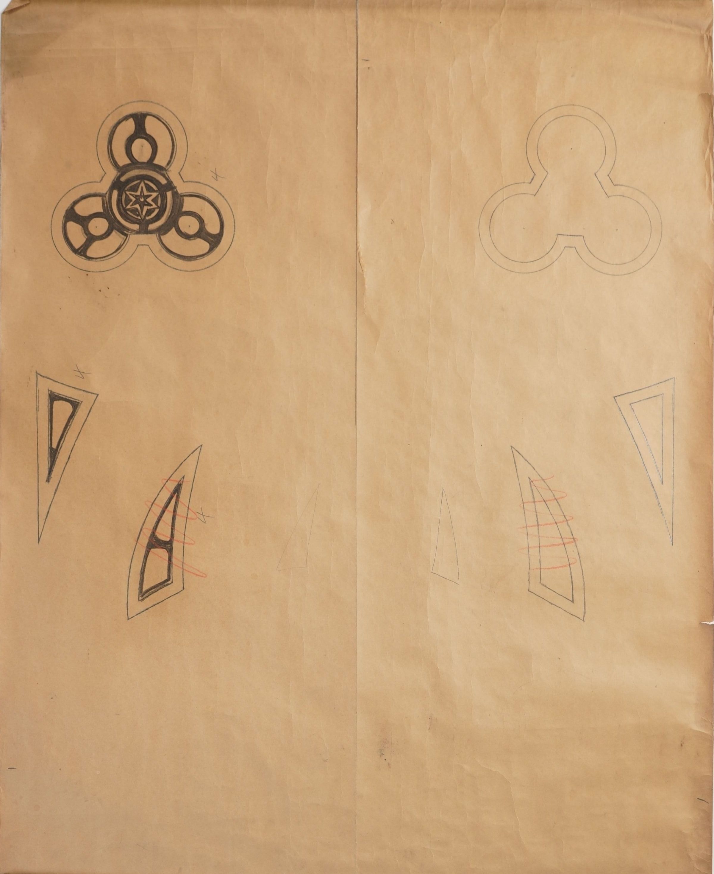 Stained glass scale cartoon, Rosary Cathedral, Toledo, OH. Tracery for window.Type of Drawing