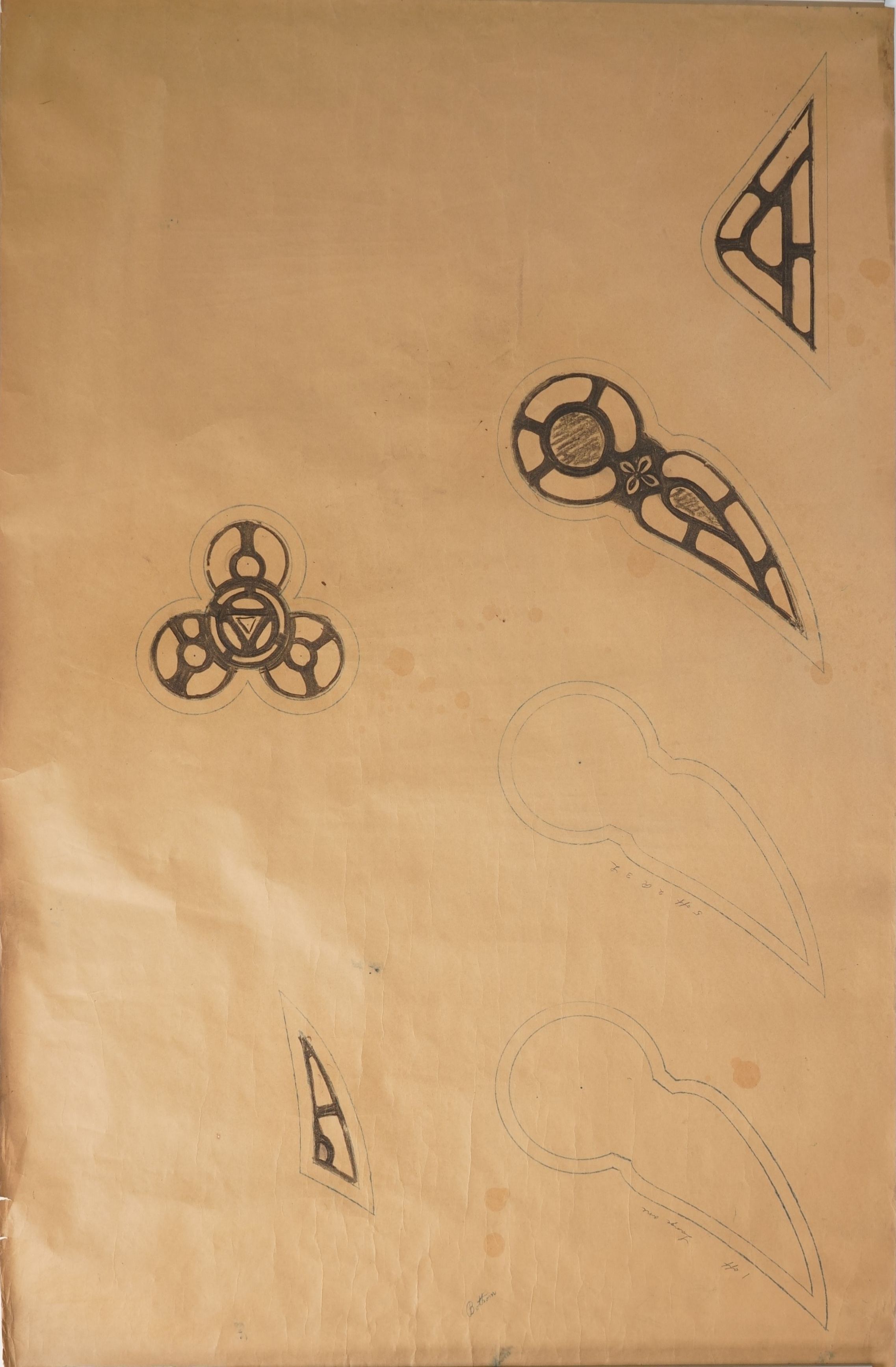 Stained glass scale cartoon, Rosary Cathedral, Toledo, OH. Tracery for window.Type of Drawing