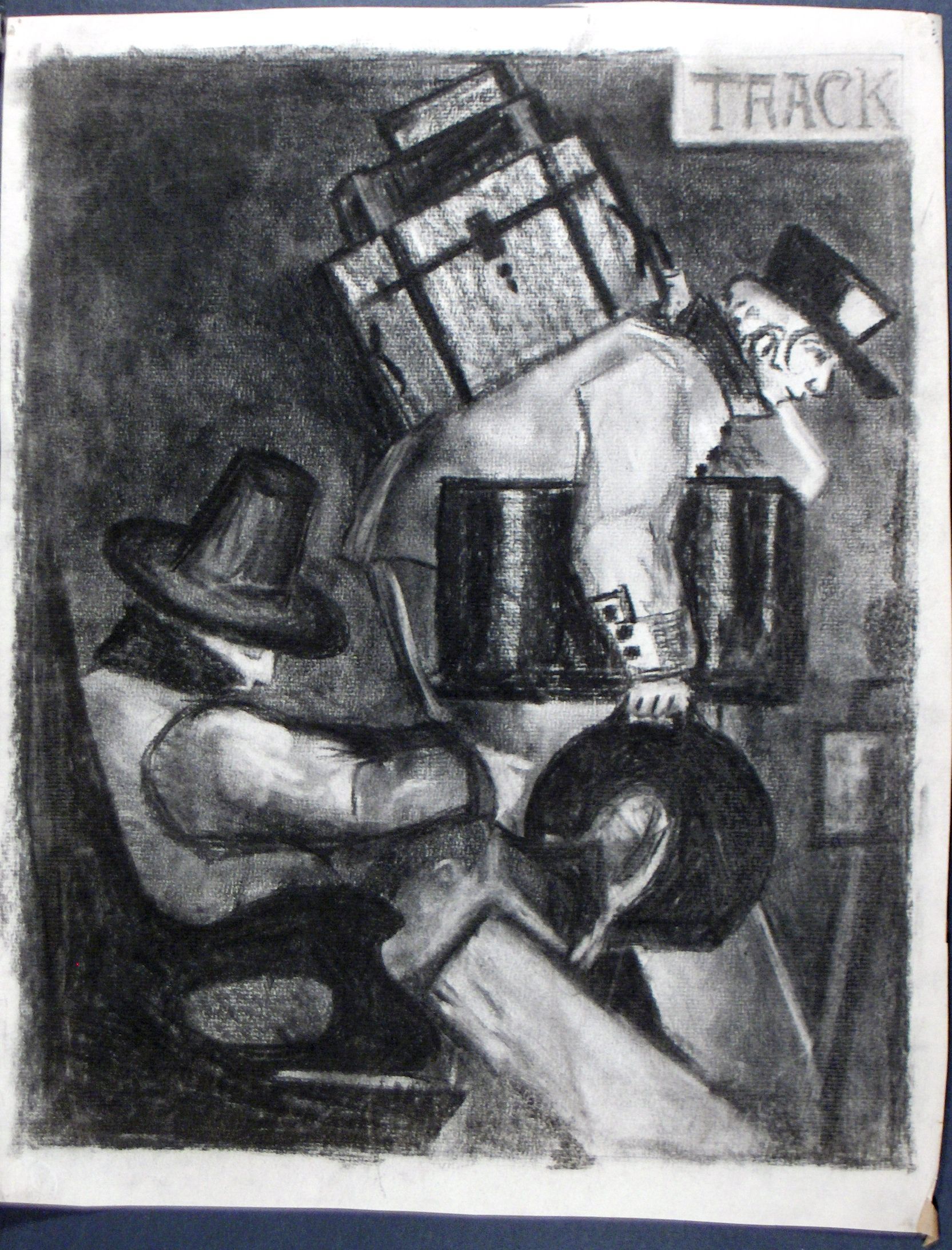 Art, Drawing, Train stations, Stations, Trains, Baggae, Passengers, Conductors, Baggage handlers, Art, Drawing