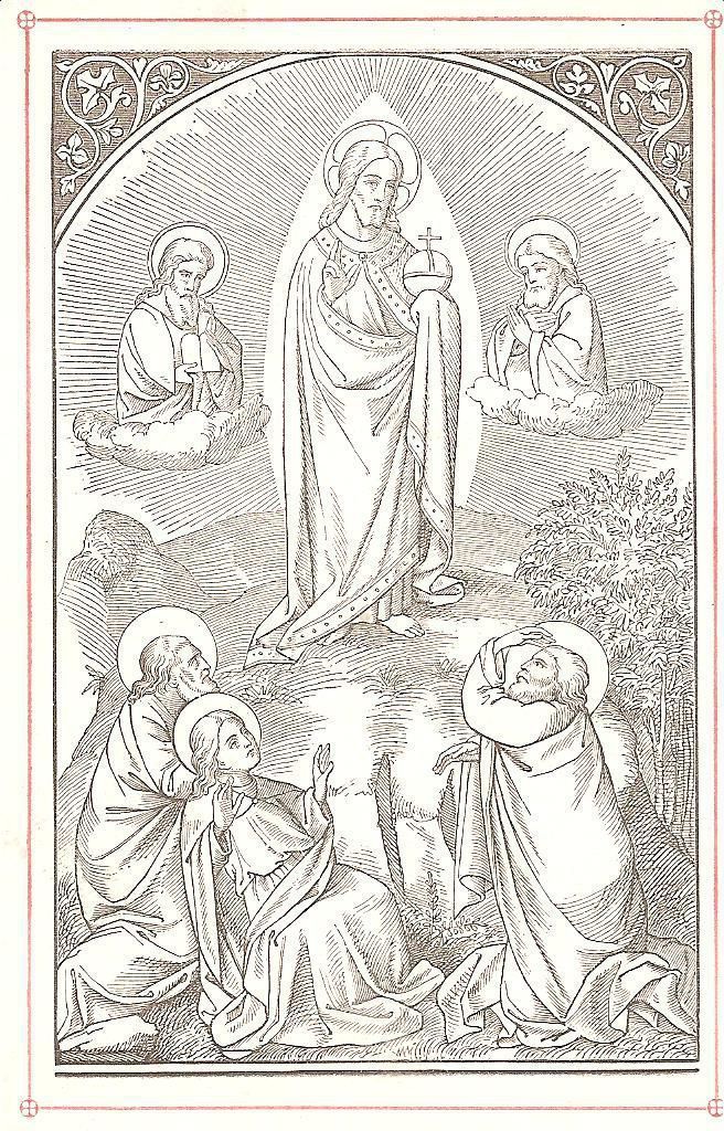 Ink, Paper, Print, Lithograph, Schongauer, Martin, Martin Schongauer, Schongauer, Albrecht Durer, Durer, Albrecht, Durer, Ink, Paper, Print, Lithograph, Prayer Cards, Religious, Religious Subject Matter, Jesus, Peter, John, James, Elijah, Moses, Transfiguration, Son, God