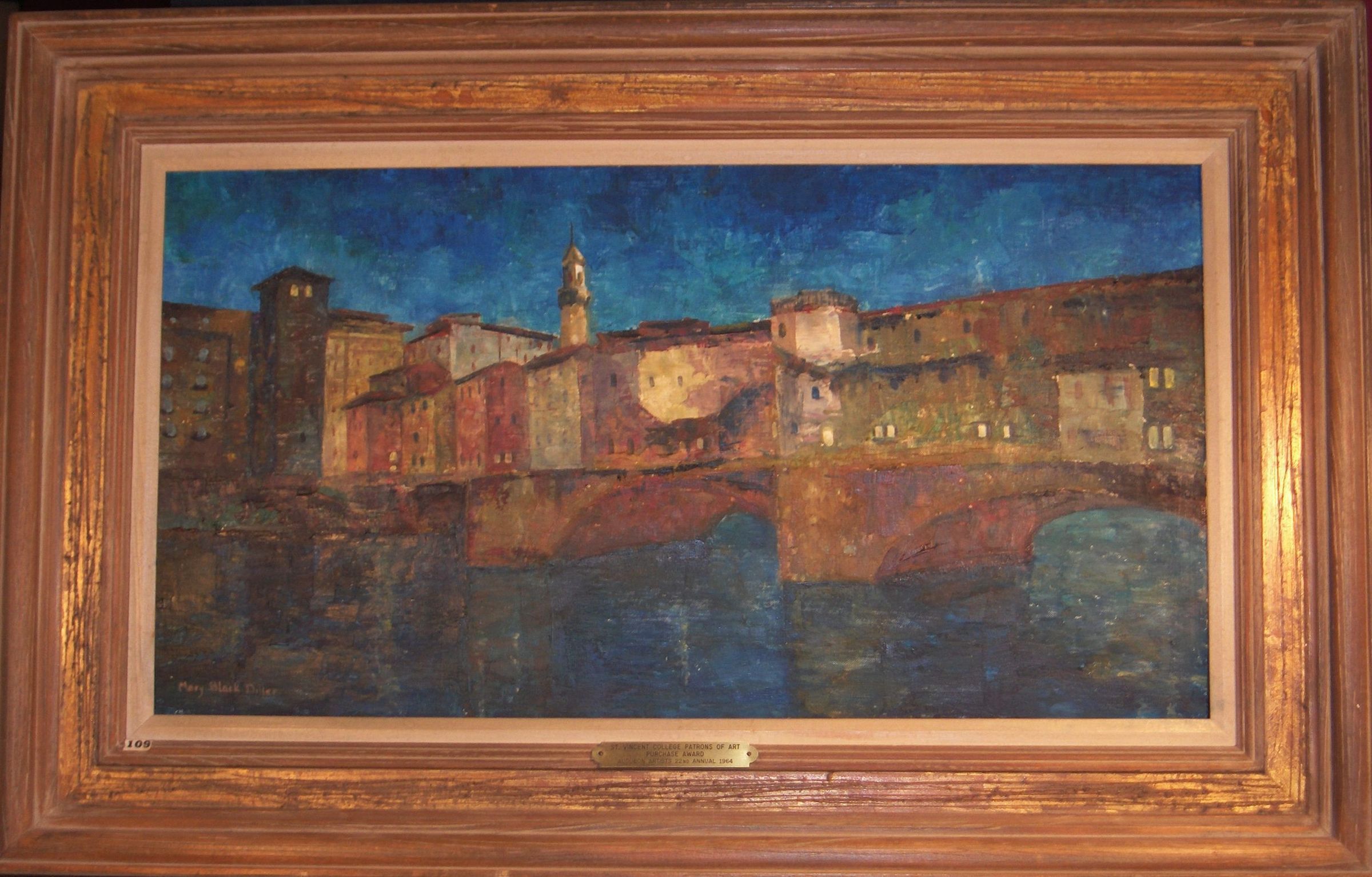 Oil Paint, Canvas, Painting, Twilight in Florence, Bridge, Florence, Diller, Mary Black Diller, Diller, Mary Black, Oil Paint, Canvas, Painting
