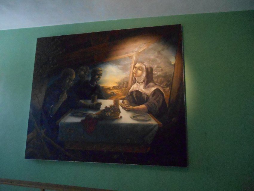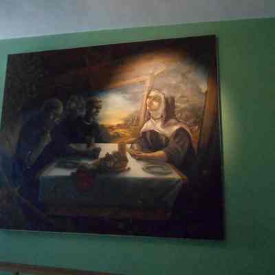 Painting, Saint Benedict, Saint Scholastica, OGLF, Painting, Saints, Eating, Grapes, Meal, Bread, landscape, Monk, Nun, Oil, Paint
