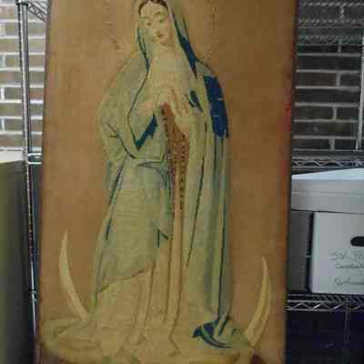 Tapestry Embroidery of Mary. her crown of stars are made of metal. Please note that the accession number does not indicate the year the piece was added to the collection, but the year that it was inventoried.Artwork Details