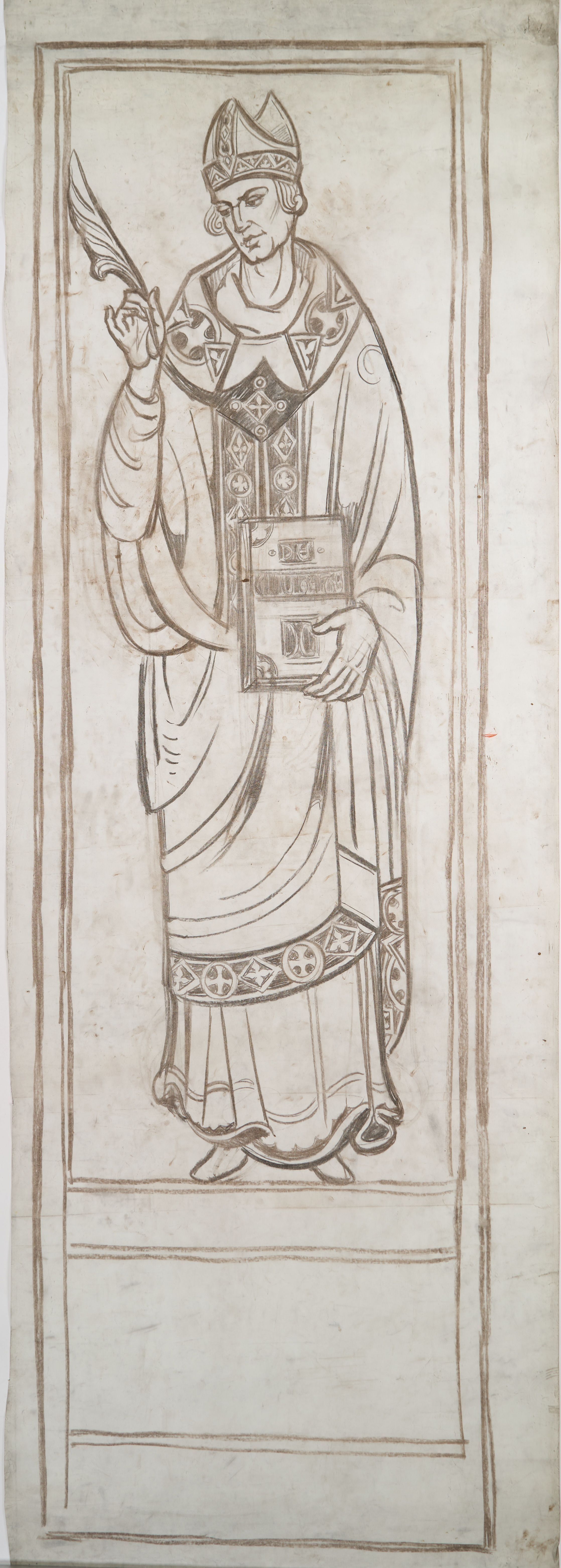 Stained glass scale cartoon, light of aisle window; unknown site. Depicts St. Gregory with a quill and book.Type of Drawing