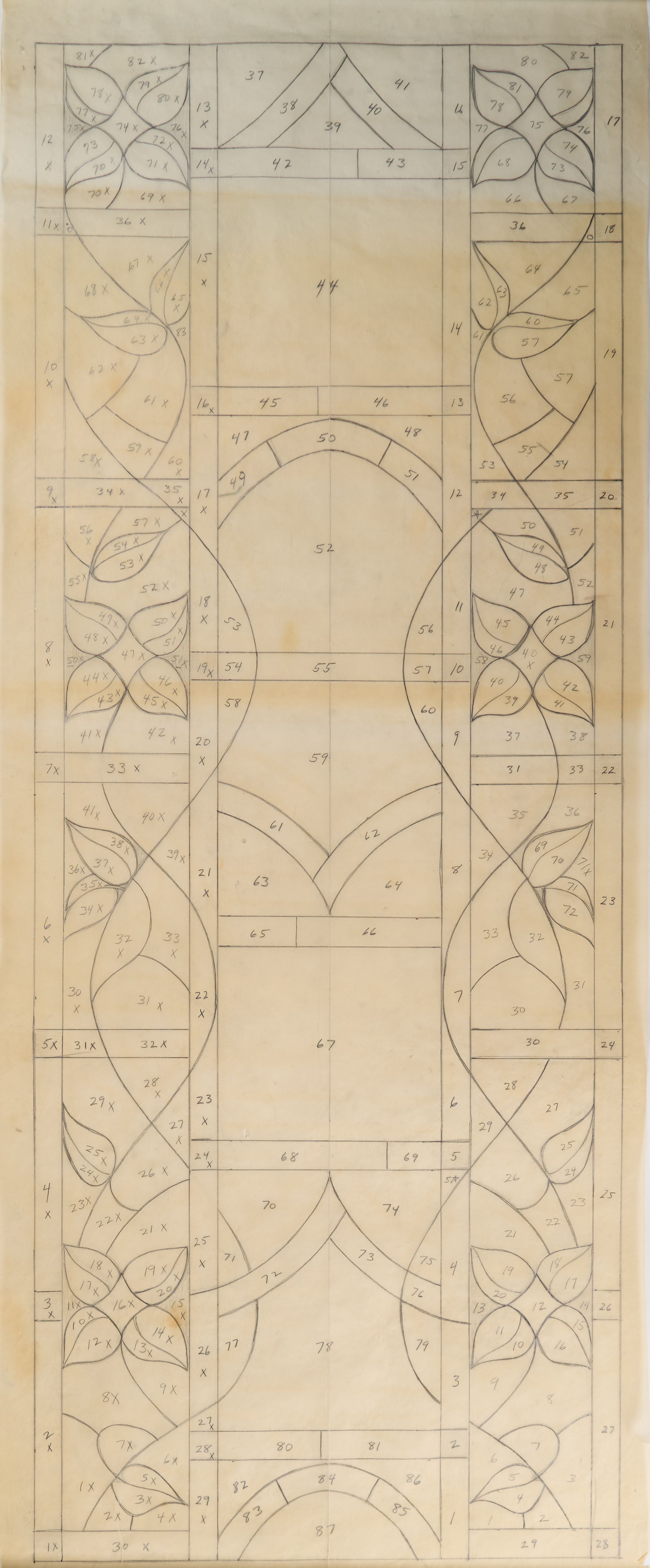 Stained glass scale cartoon, unknown site. Outline for a decorative floral window.Type of Drawing