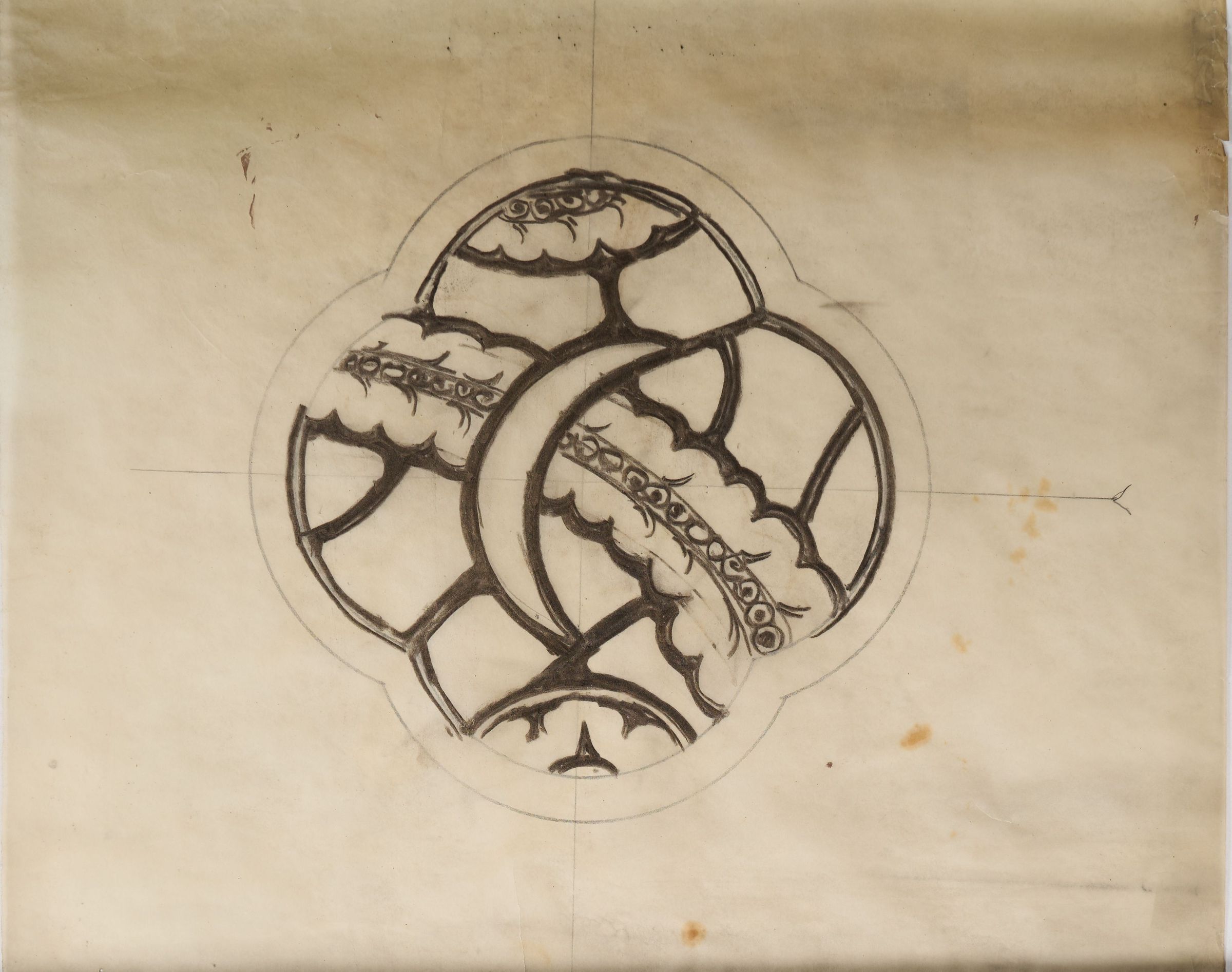 Stained glass scale cartoon, unknown site. A medallion depicting a crescent moon.Type of Drawing