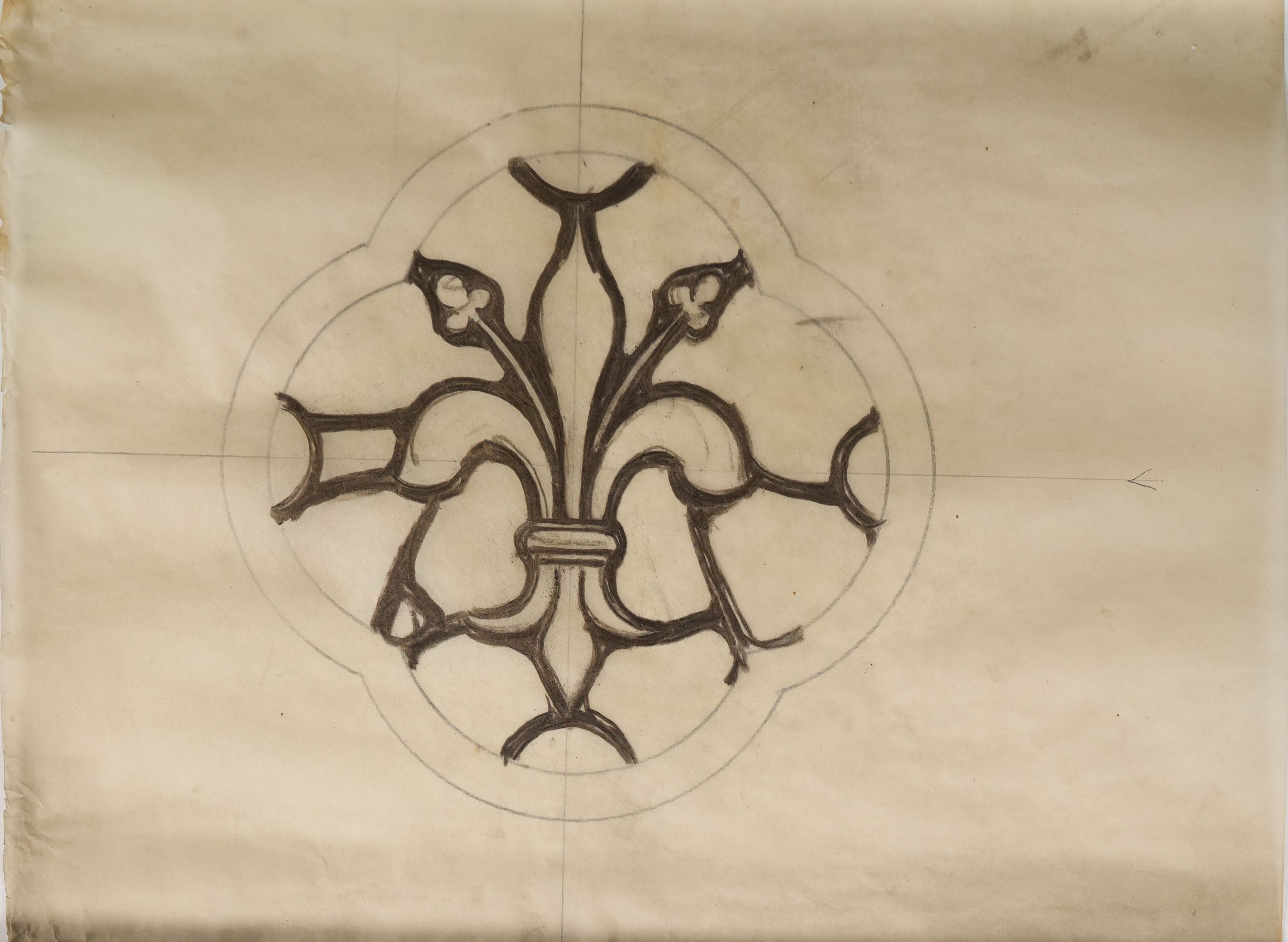 Stained glass scale cartoon, unknown site. A medallion depicting a fleur-de-lis.Type of Drawing