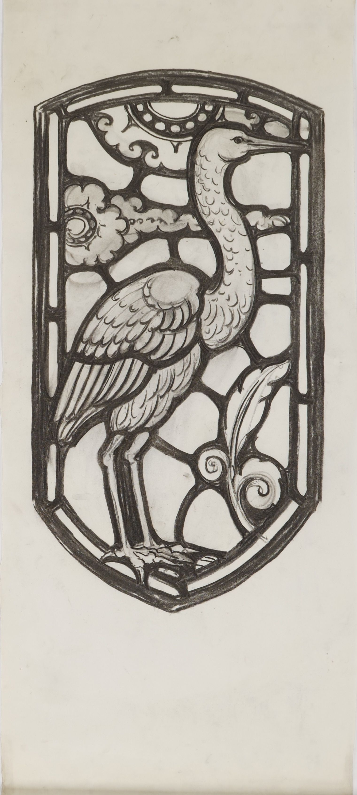 Stained glass scale cartoon, window medallion for unknown site. Depicts a stork or heron.Type of Drawing