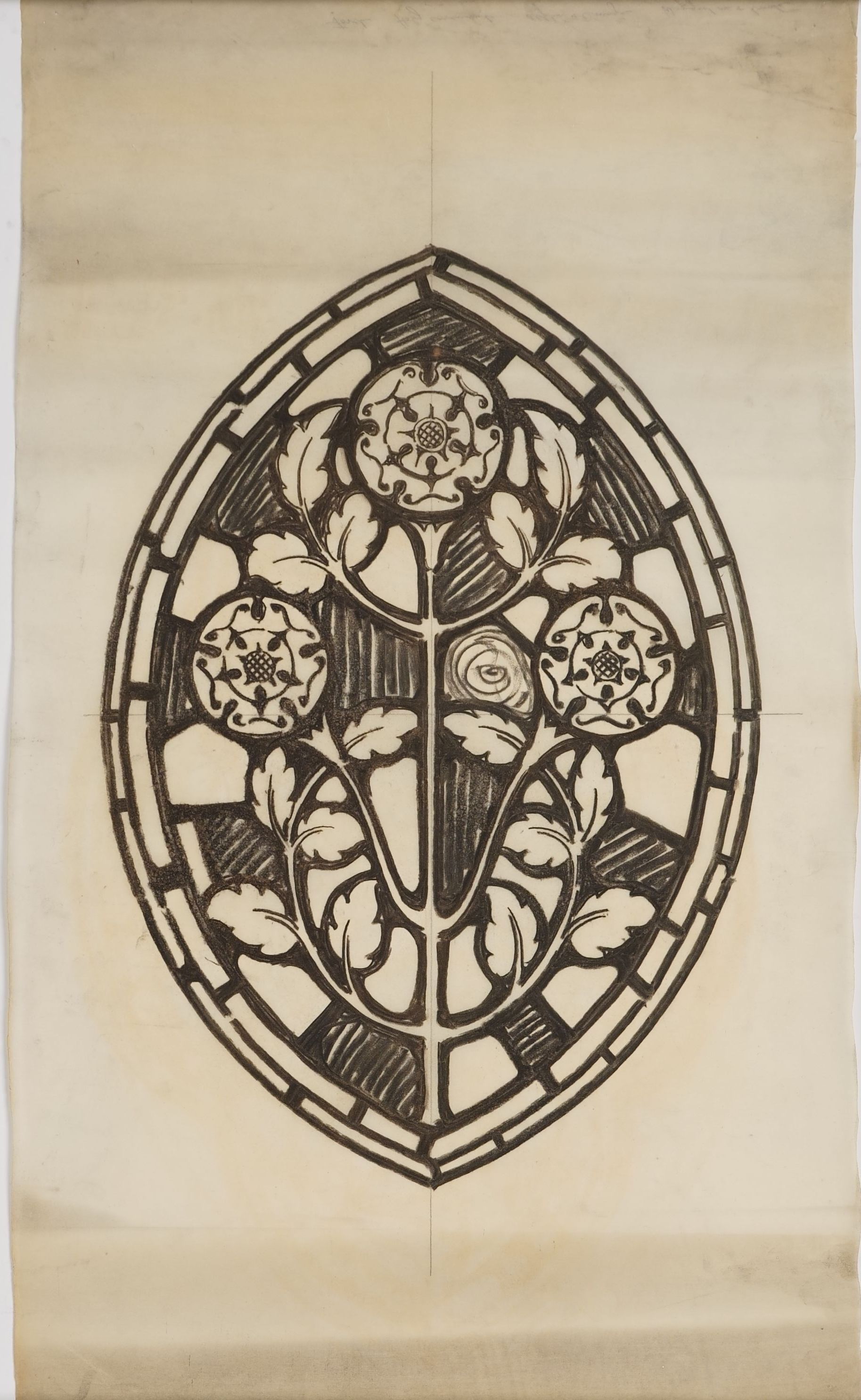 Stained glass scale cartoon; unknown site. A medallion; depicts three roses.Type of Drawing