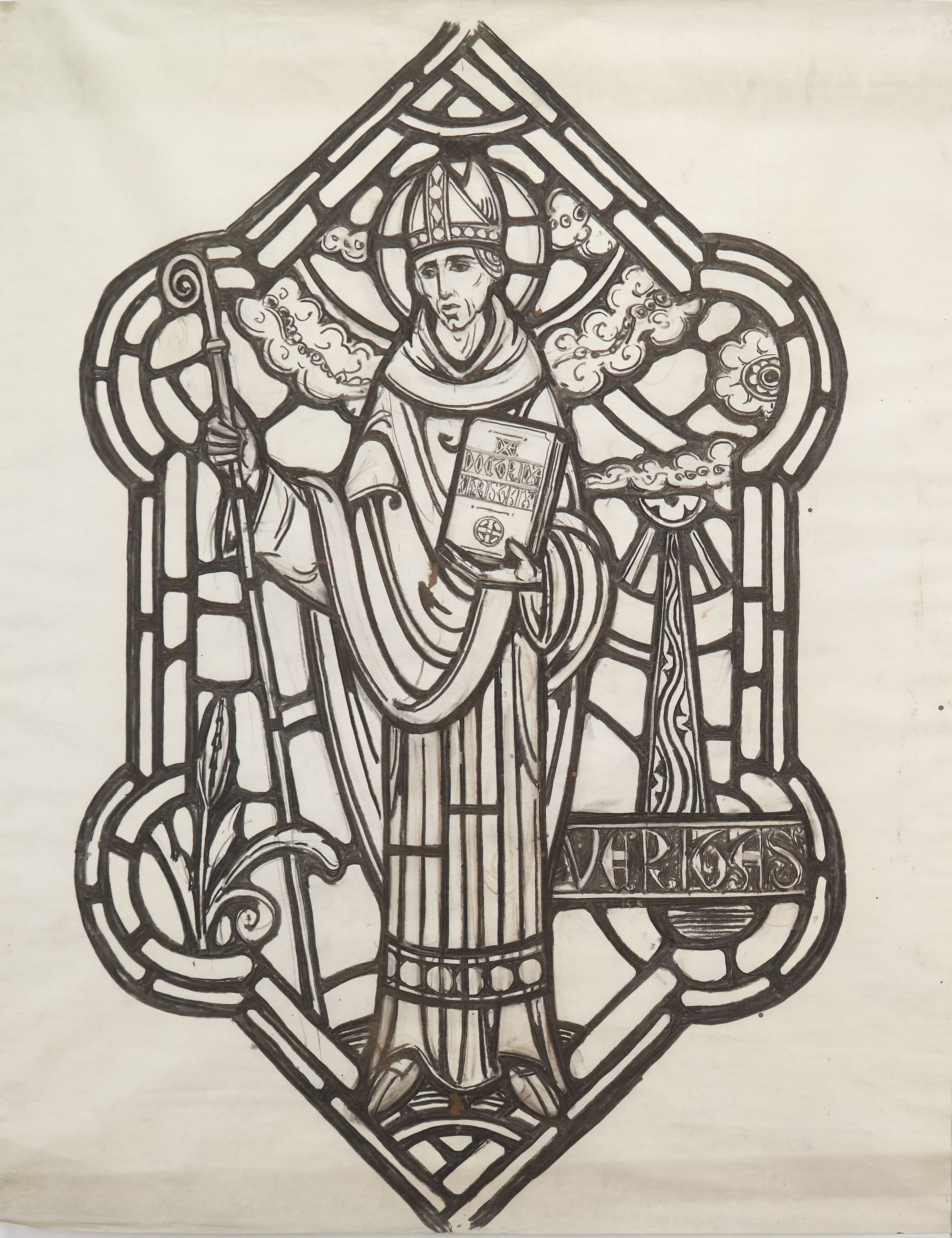 Stained glass scale cartoon; unknown site. Medallion depicting St. Augustine of Hippo holding a crozier and a book that reads "De Doctrina Christiana" ("On Christian Doctrine").Type of Drawing