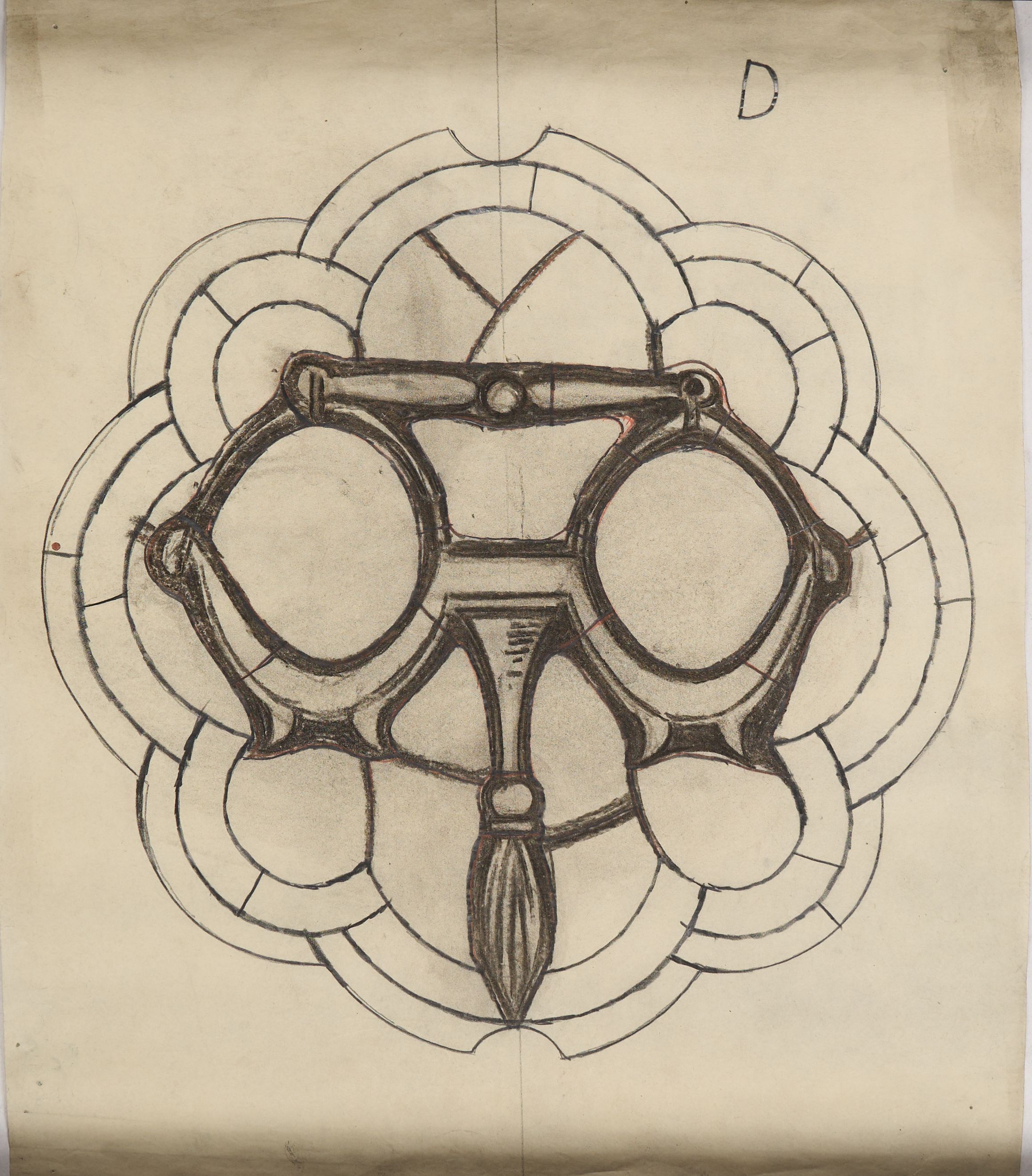 Stained glass scale cartoon, medallion for unknown church. Depicts a yoke.Type of Drawing