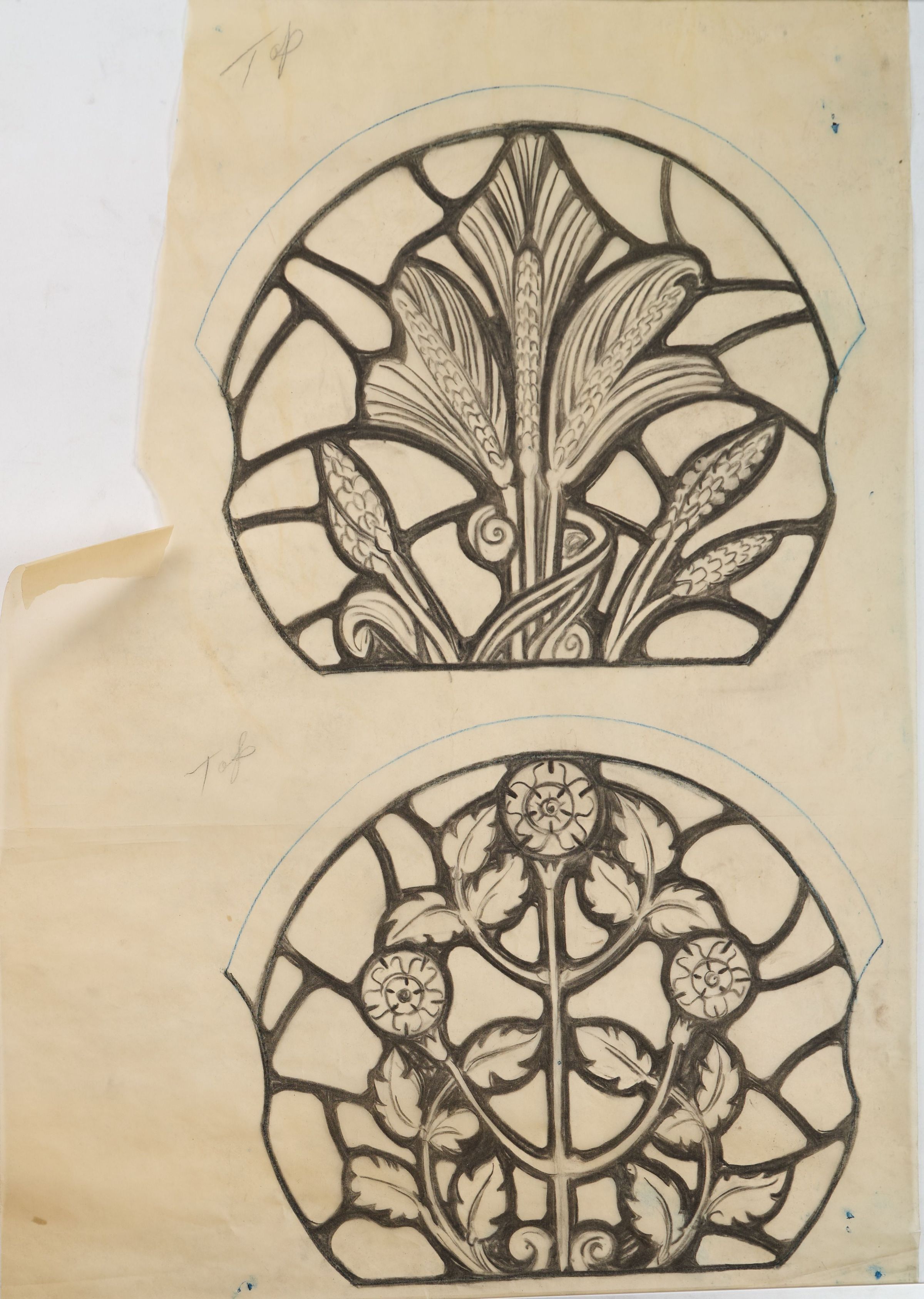 Stained glass scale cartoon, St. Mark's Episcopal Church, Toledo, OH. Aisle window part depicting wheat and roses.Type of Drawing