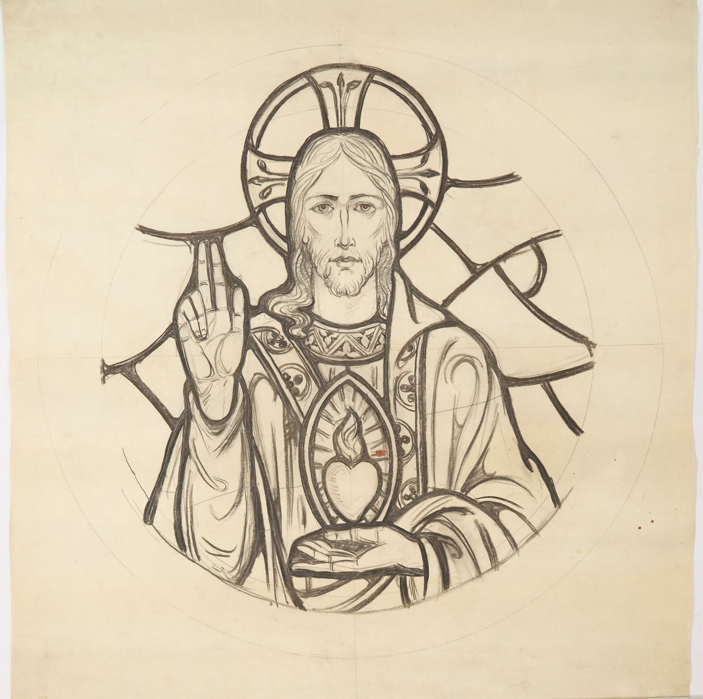 Stained glass scale cartoon; unknown site. Roundel depicting the Sacred Heart of Jesus.Type of Drawing