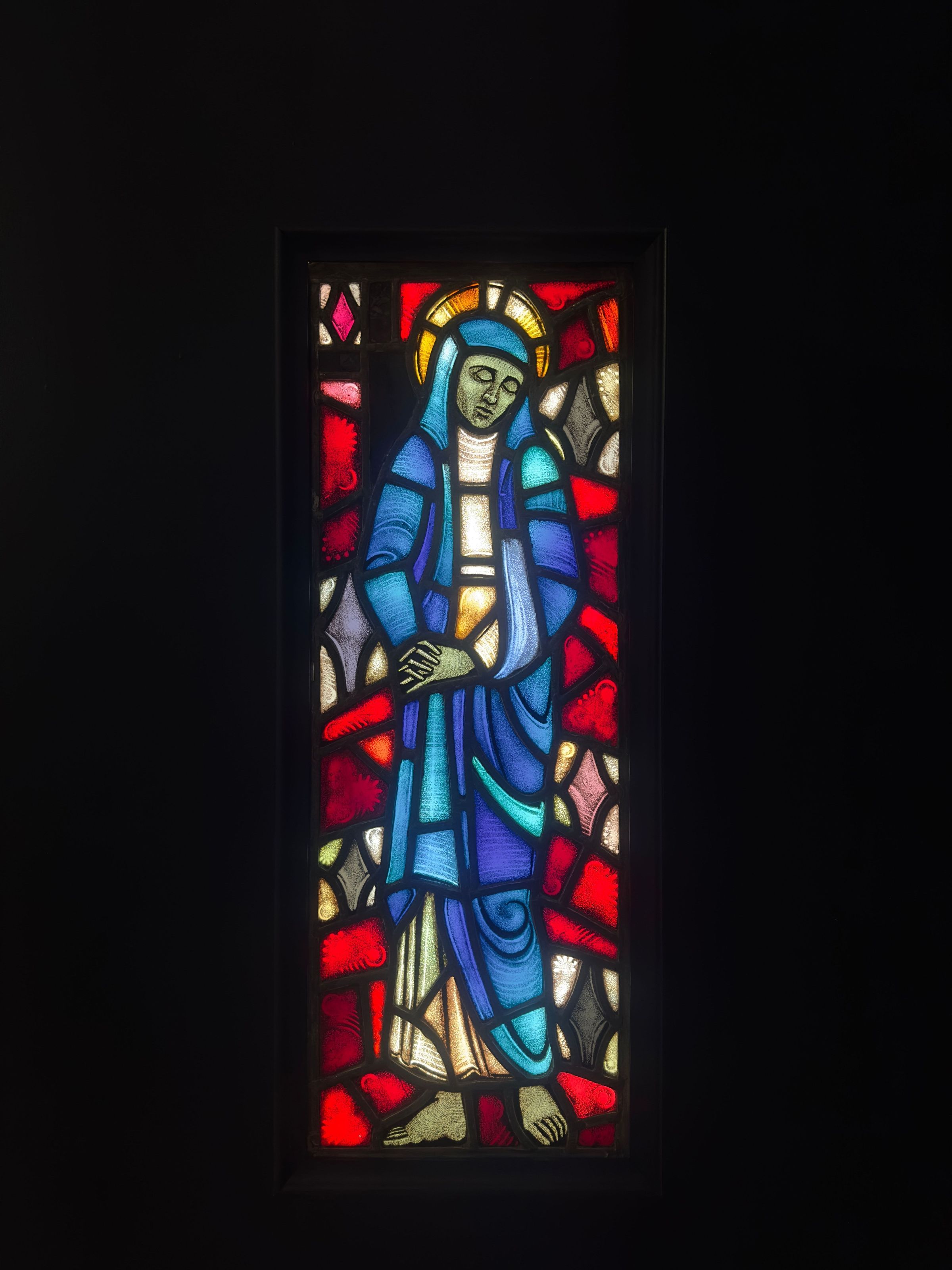 A small stained glass panel by Louise Pitassi Ellis, possibly depicting St. Catherine of Siena. For unknown site.Collection