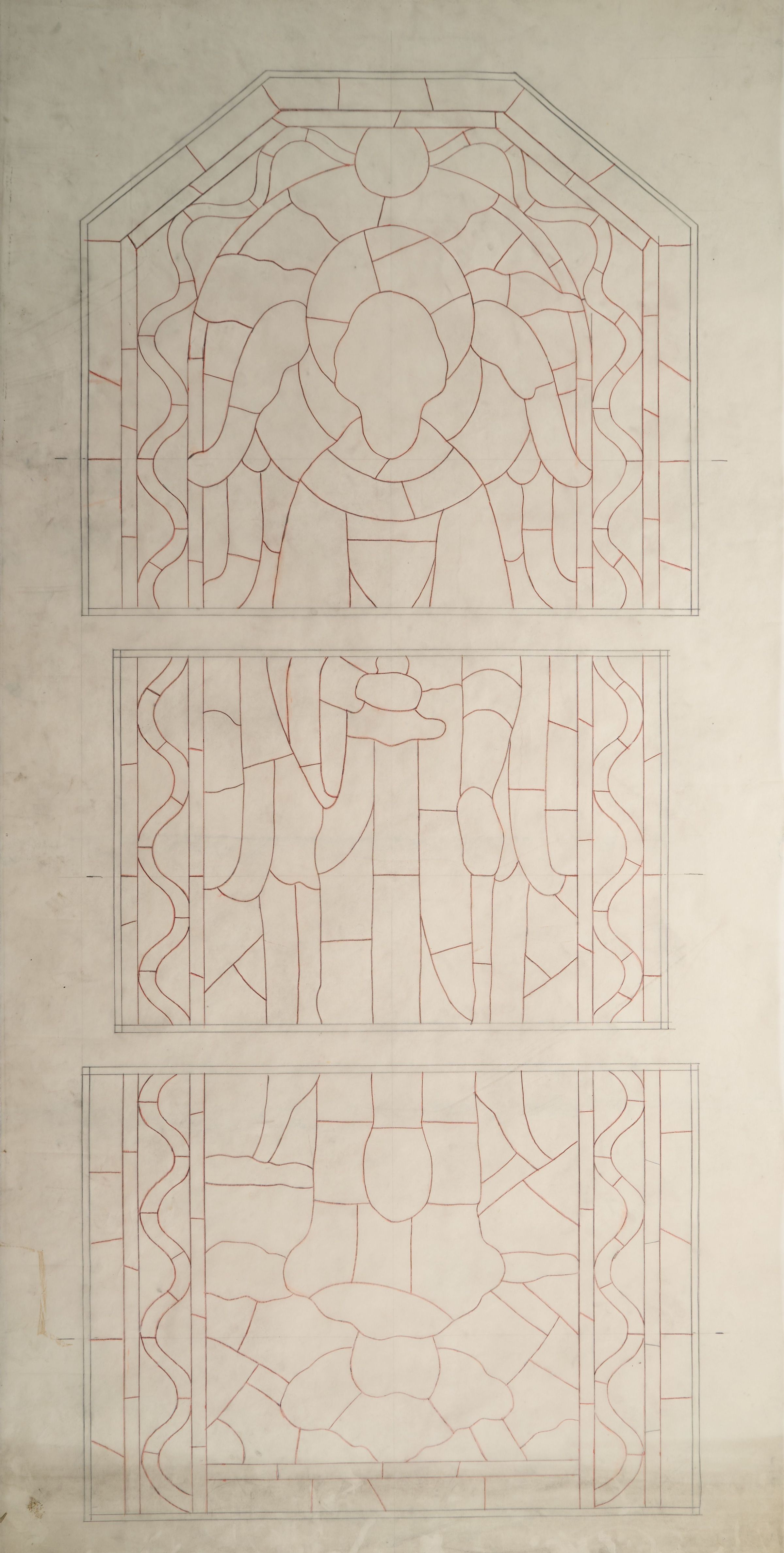 Stained glass scale cartoon, unknown site. Window depicting the Archangel UrielType of Drawing