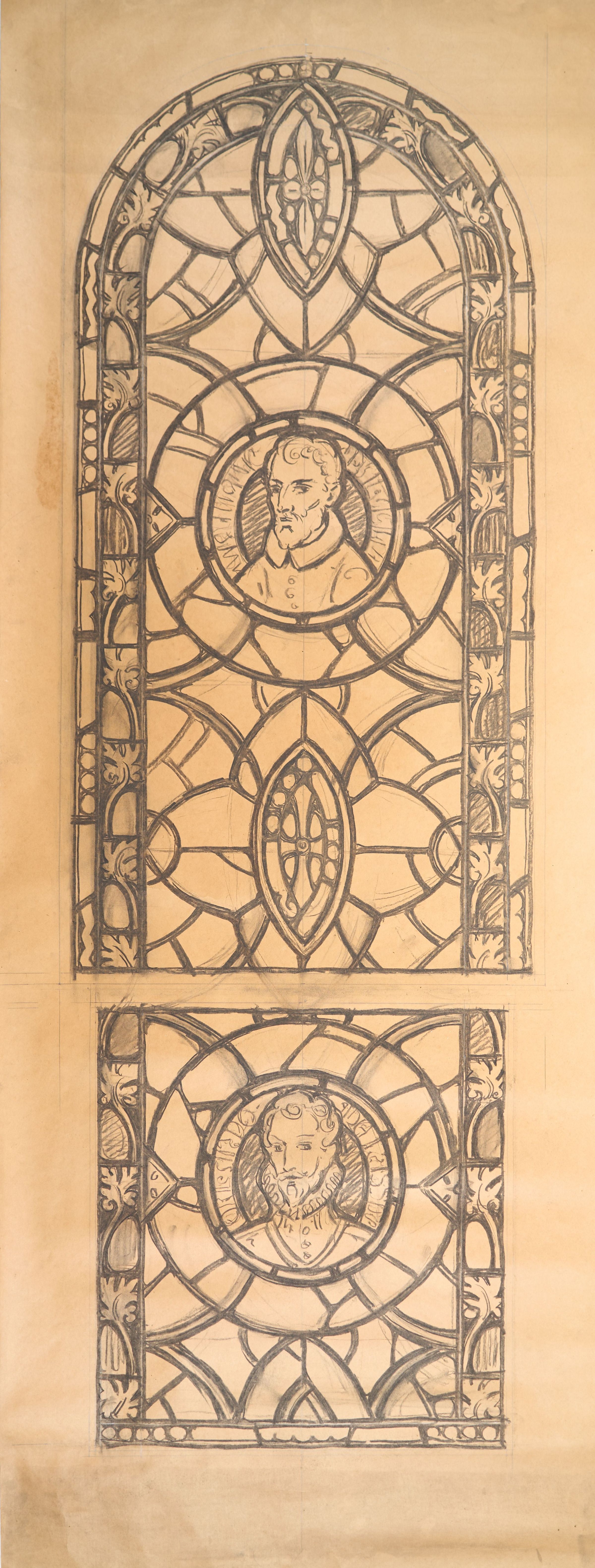 Stained glass scale cartoon; window at Rosary Cathedral in Toledo, OH. Depicts Giovanni Pierluigi da Palestrina and Orlando di Lassi.Type of Drawing