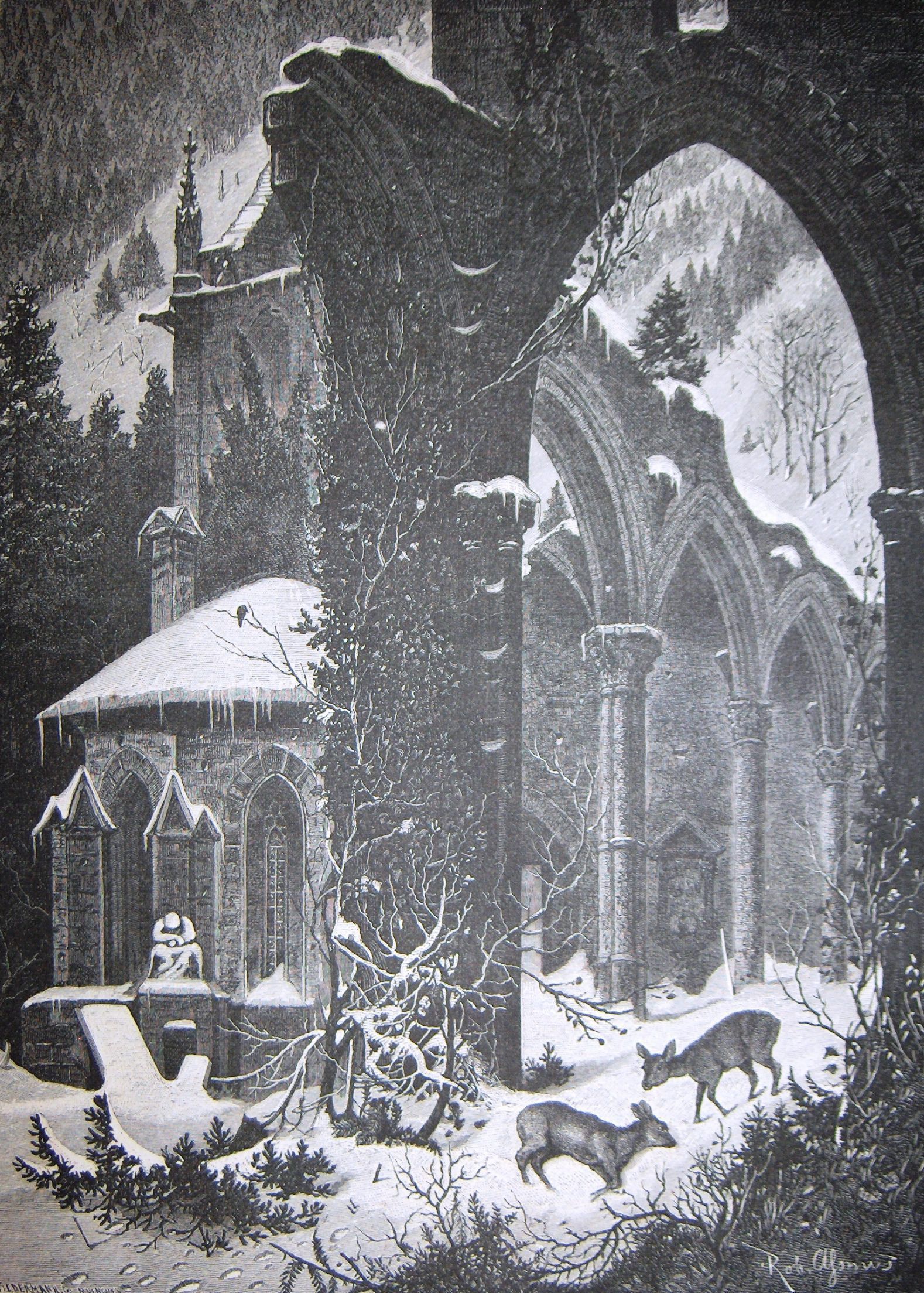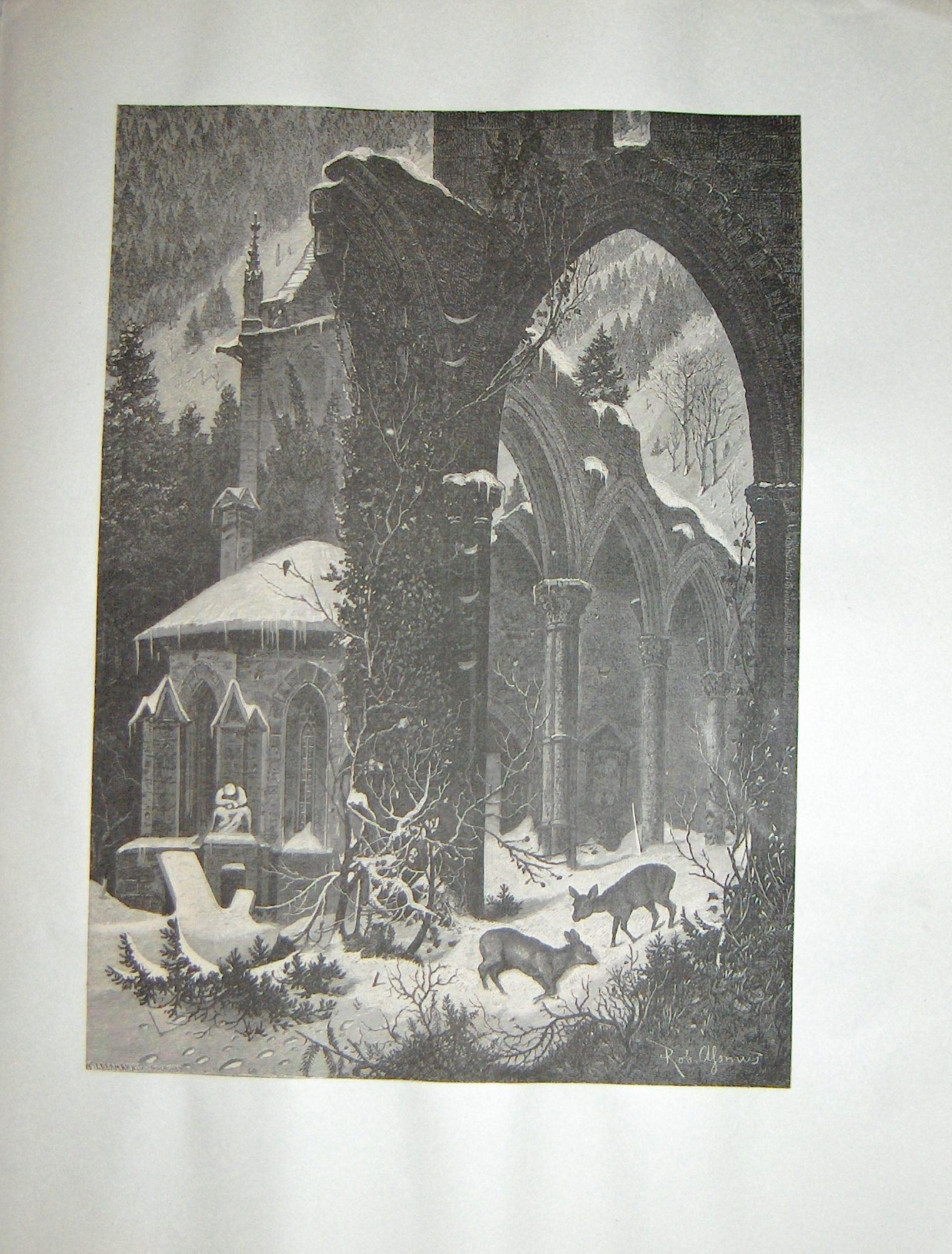 Ink, Paper, Print, Lithograph, Ink, Paper, Print, Lithograph, Buildings, Architechture, German, Deer, Arch, Ruins, Alysnus, Rob