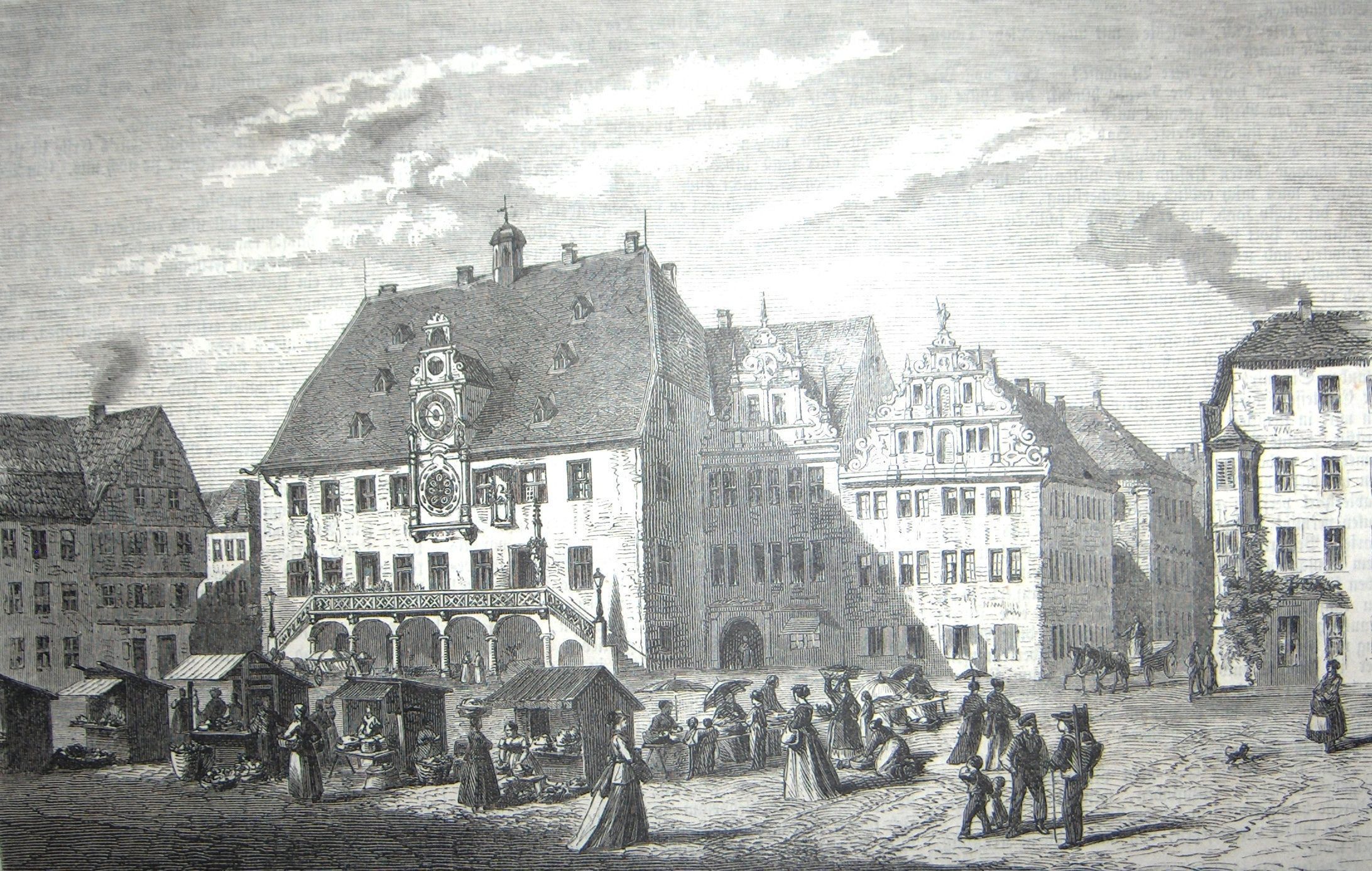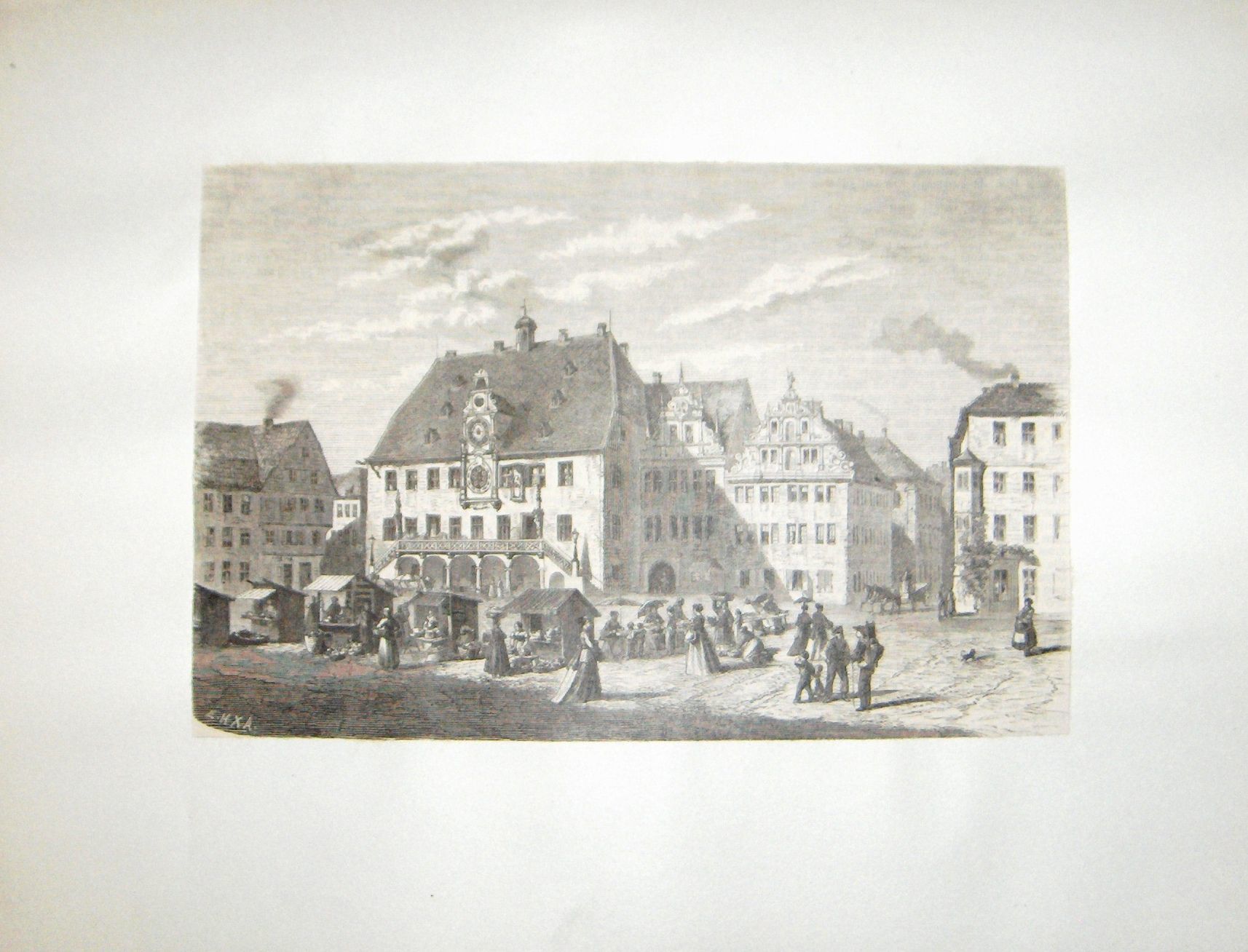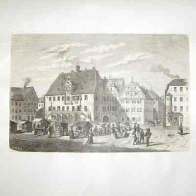 Ink, Paper, Print, Lithograph, Ink, Paper, Print, Lithograph, Buildings, Architechture, German, Town, Market