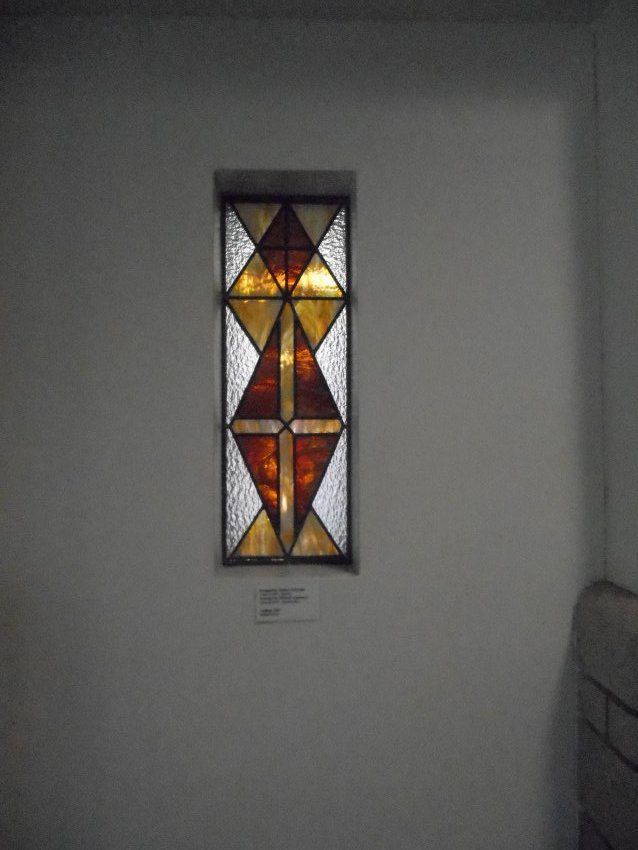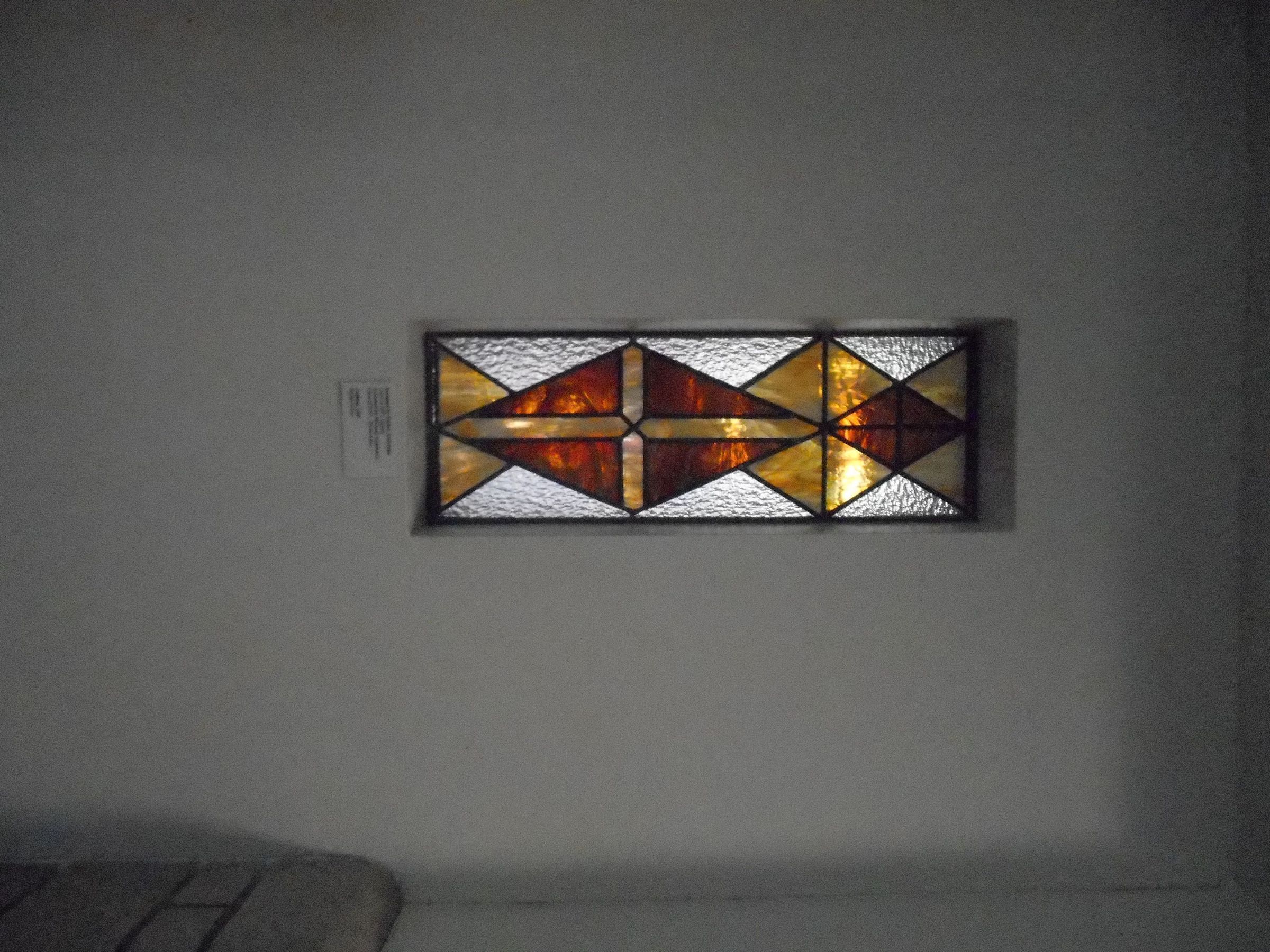 Stained Glass Installation accross the hall from Dean Kaylors office. In the wall.Artwork Details