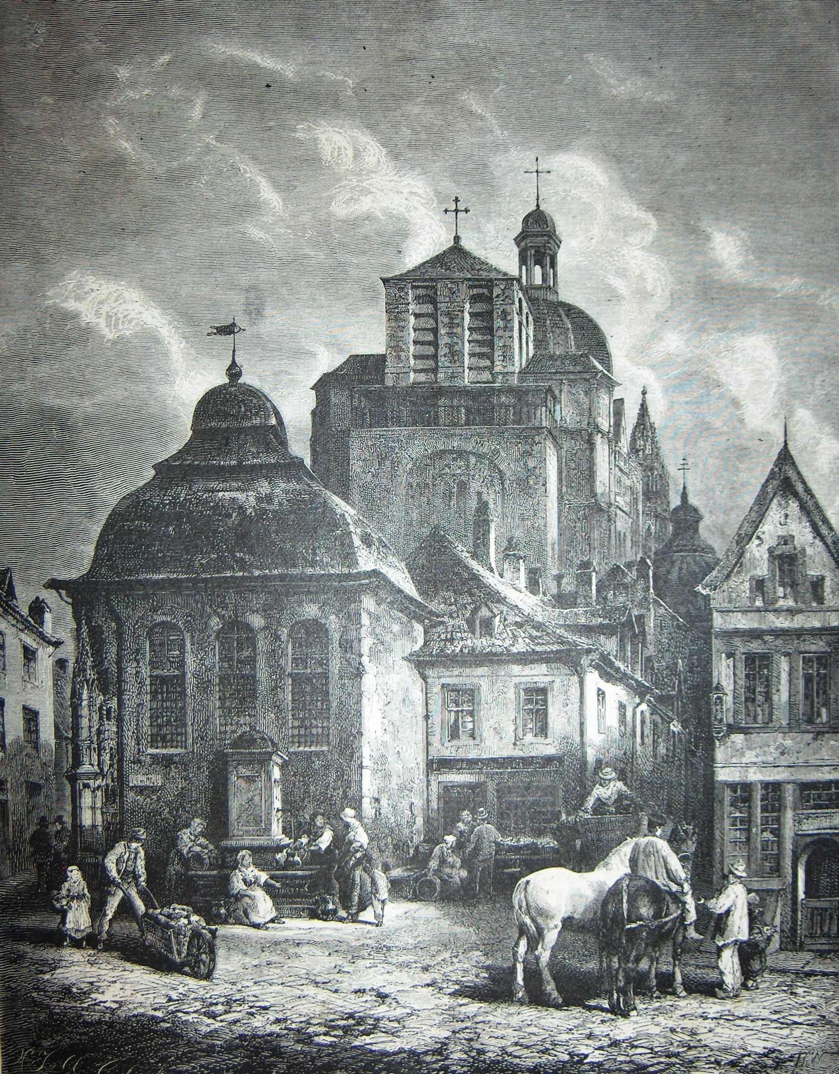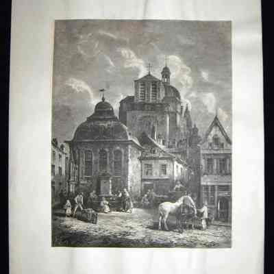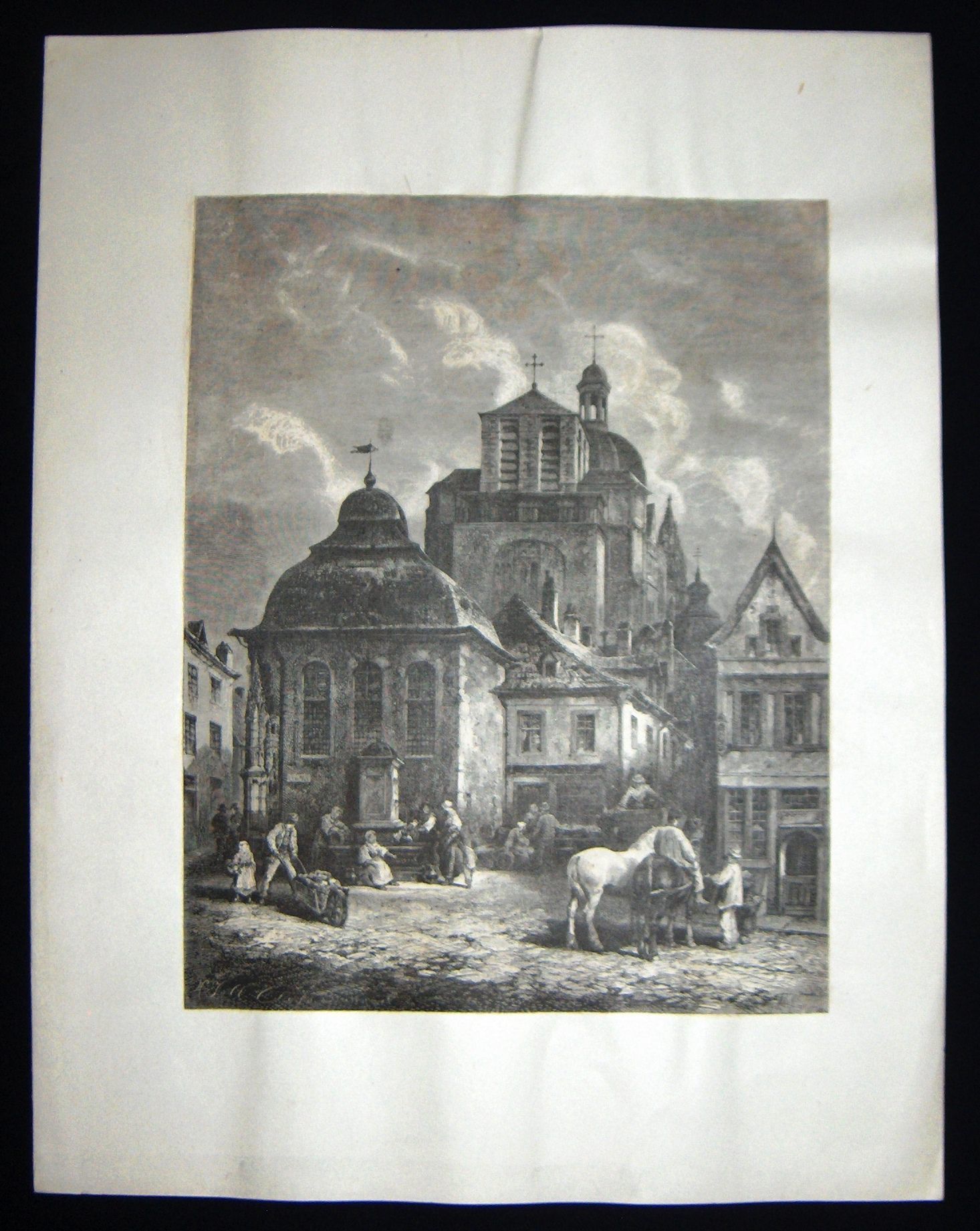 Ink, Paper, Print, Lithograph, Ink, Paper, Print, Lithograph, Buildings, Architechture, German, Town, Market