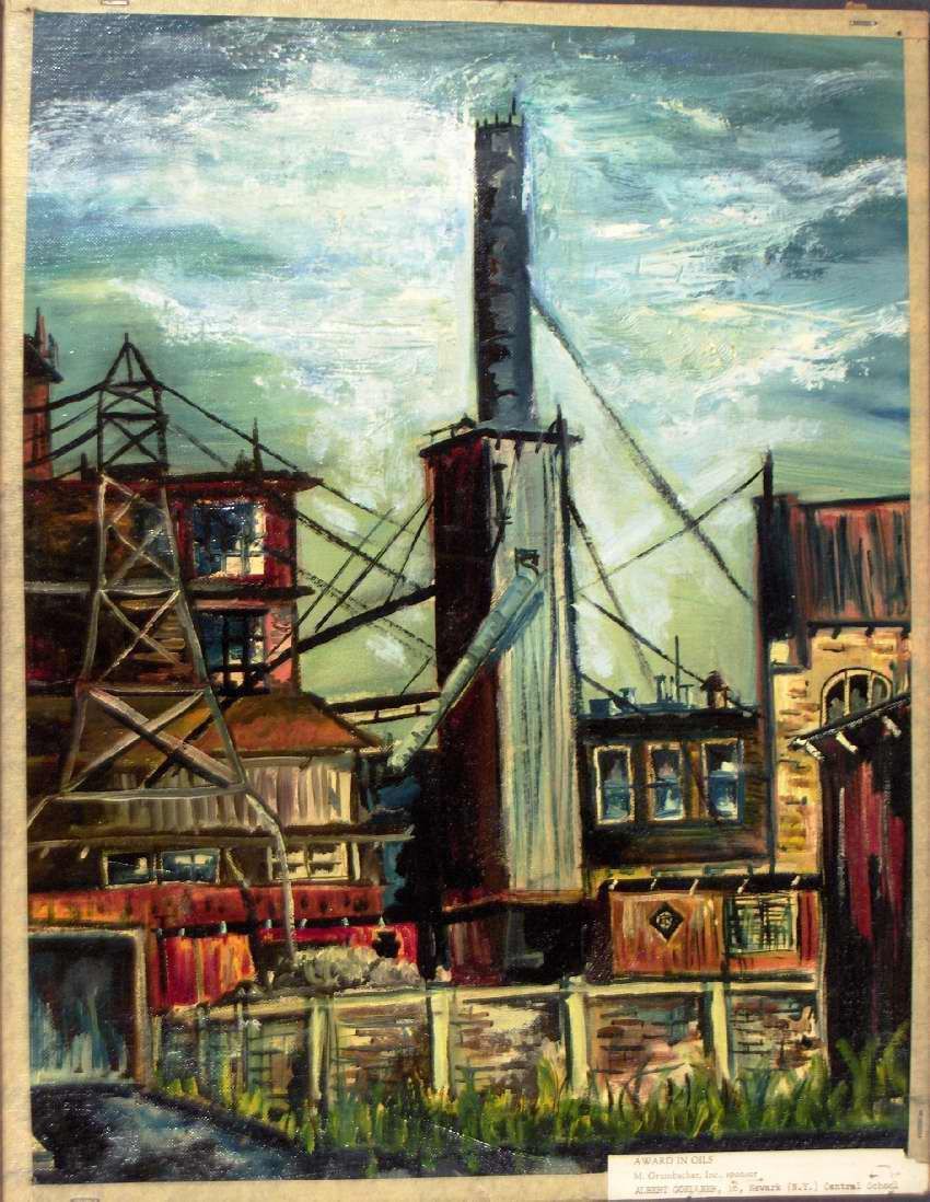 Art, Painting, Oil Painting, Art, Painting, Oil painting, Cities, Cityscapes, Industrial, Industries, Neighborhoods, Mills, Scholastic Art