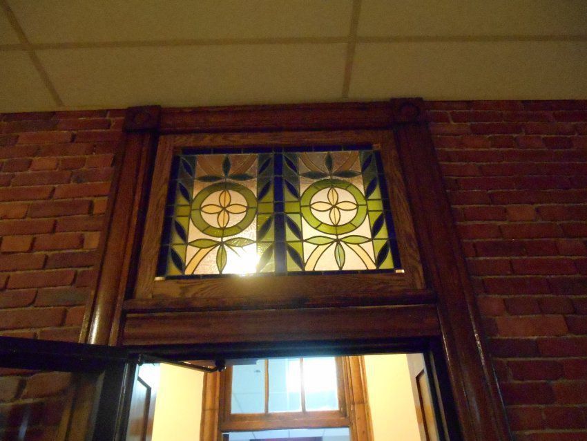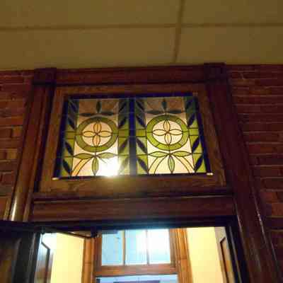 Floral Design with blue, grean and yellow glass. Above door to Marekting and Communications offices.Artwork Details