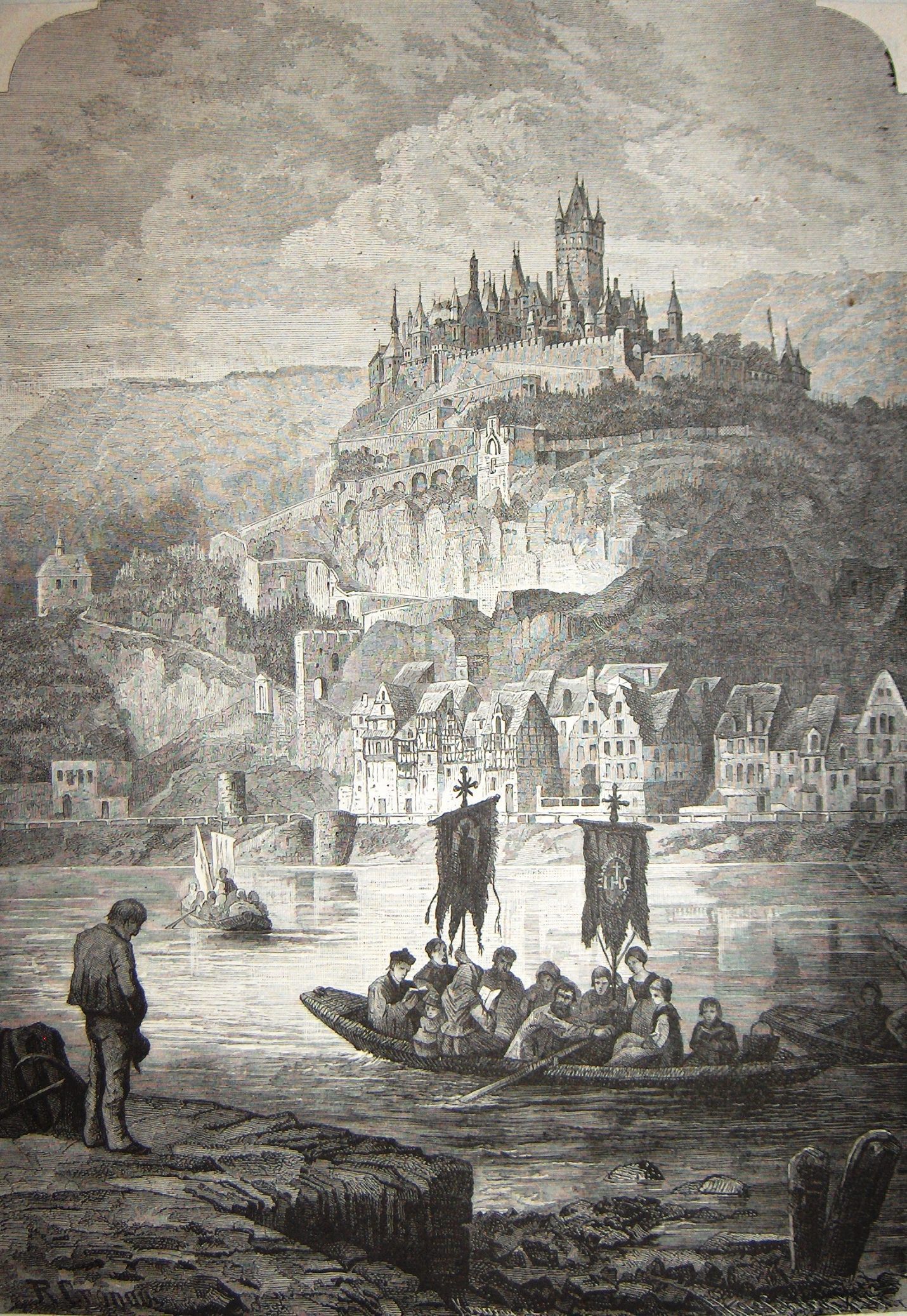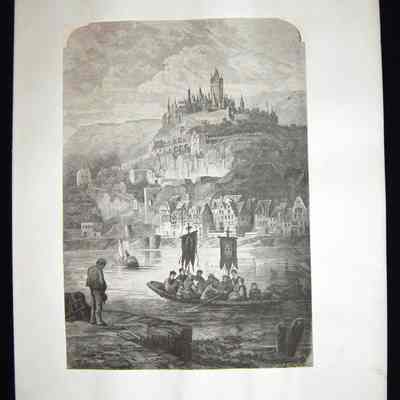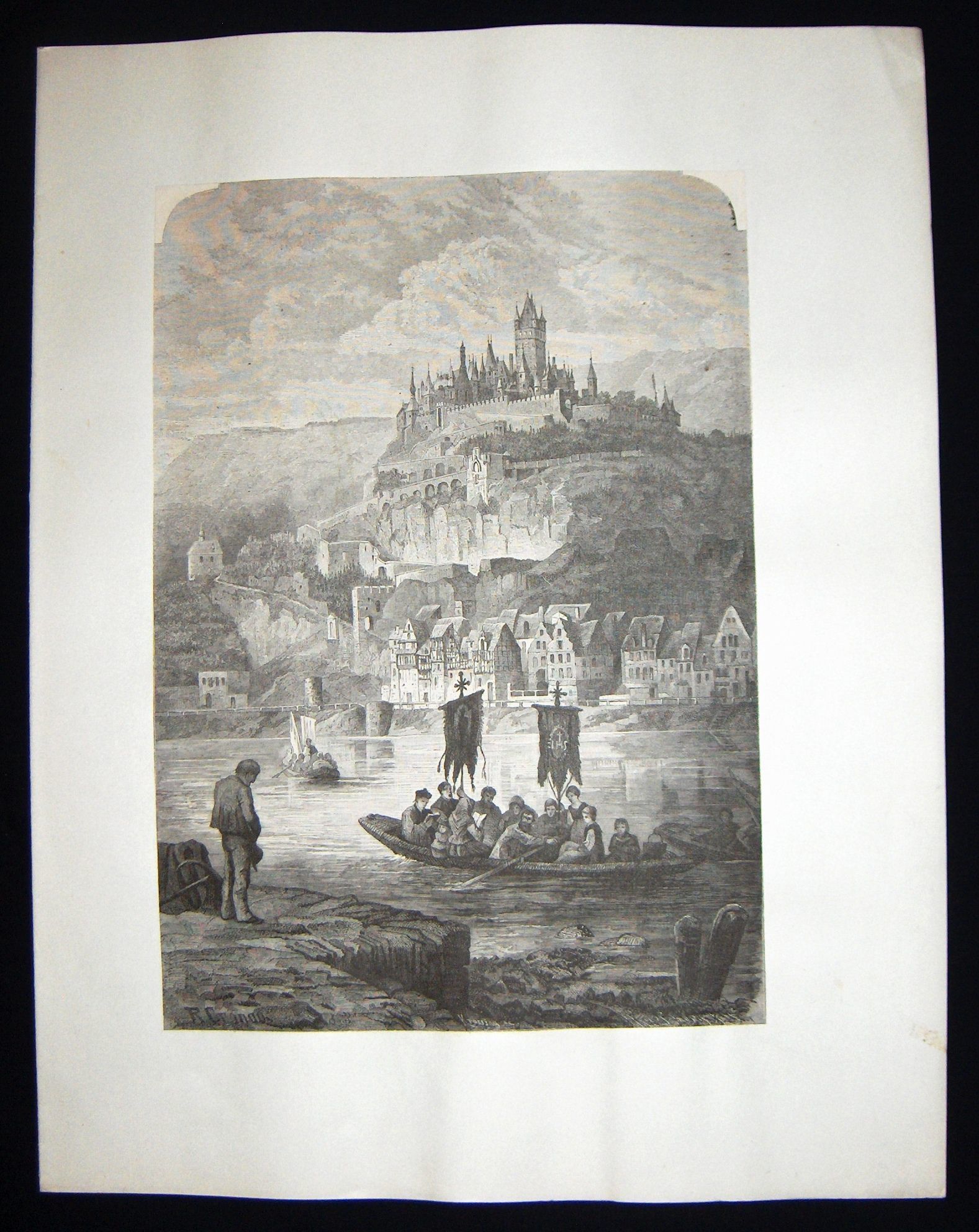Ink, Paper, Print, Lithograph, Ink, Paper, Print, Lithograph, Town, Rowers, Boats, Shore