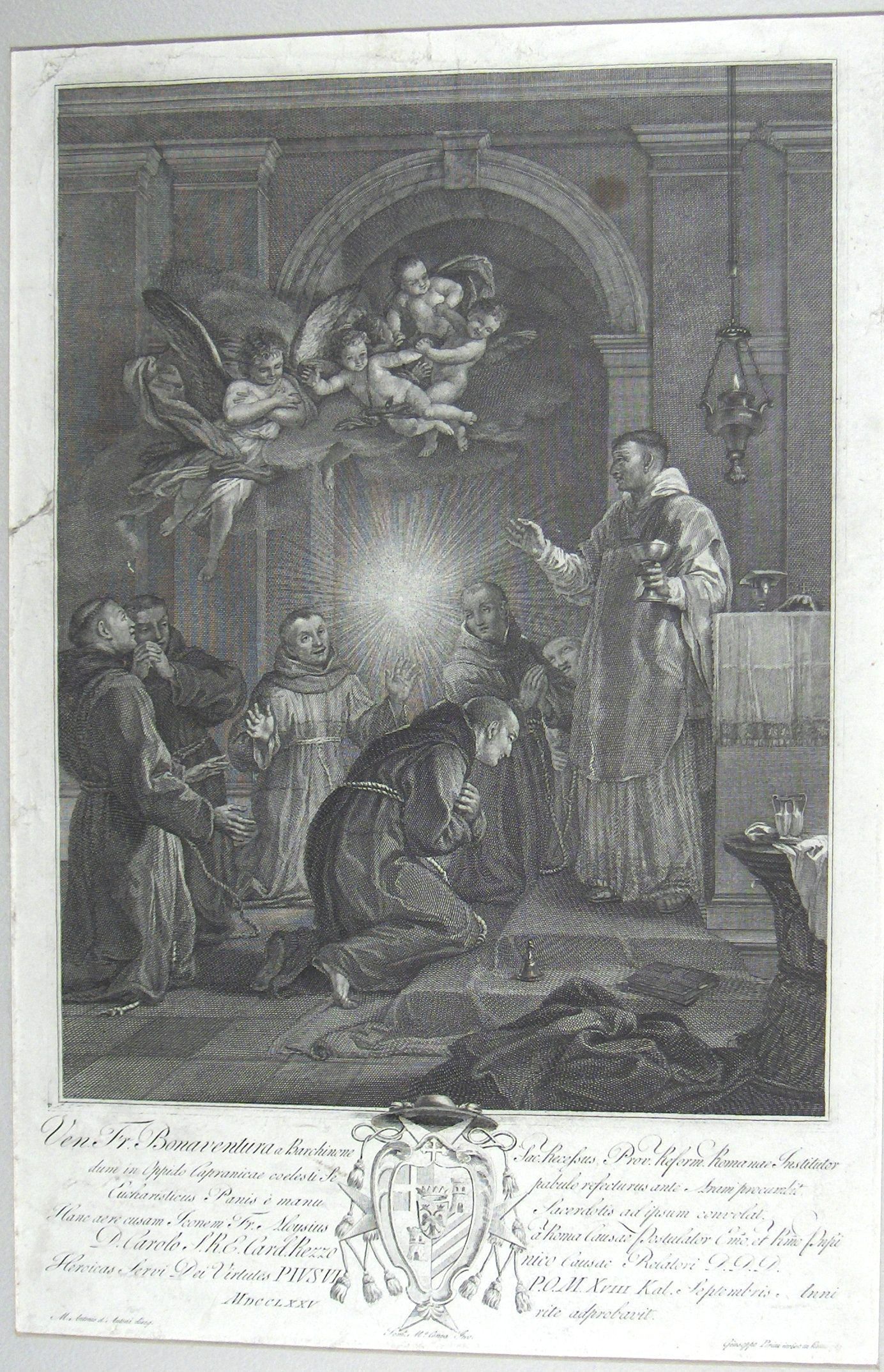 Engraving, Artwork, Ink, Ven. Fr. Bonaventura, Parini,Giuseppe, Parini, Monks, Angels, Alter, Priest, Engraving, Artwork, Ink