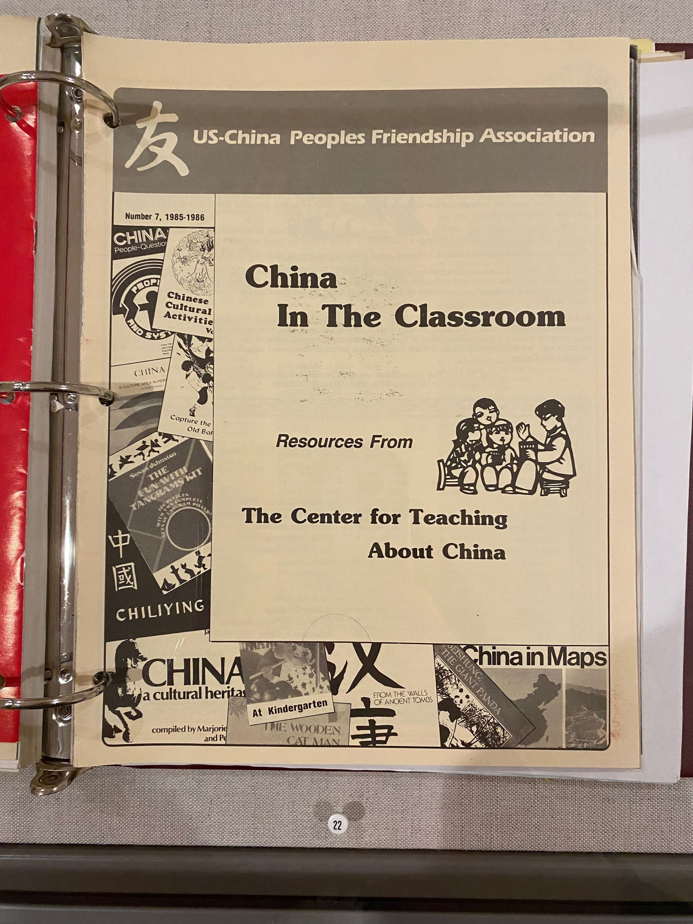 Binder of Roman Verostko’s pedagogical materials, including China in the Classroom: Resources from the Center for Teaching About China, distributed by the US-China Friendship Association.Collection